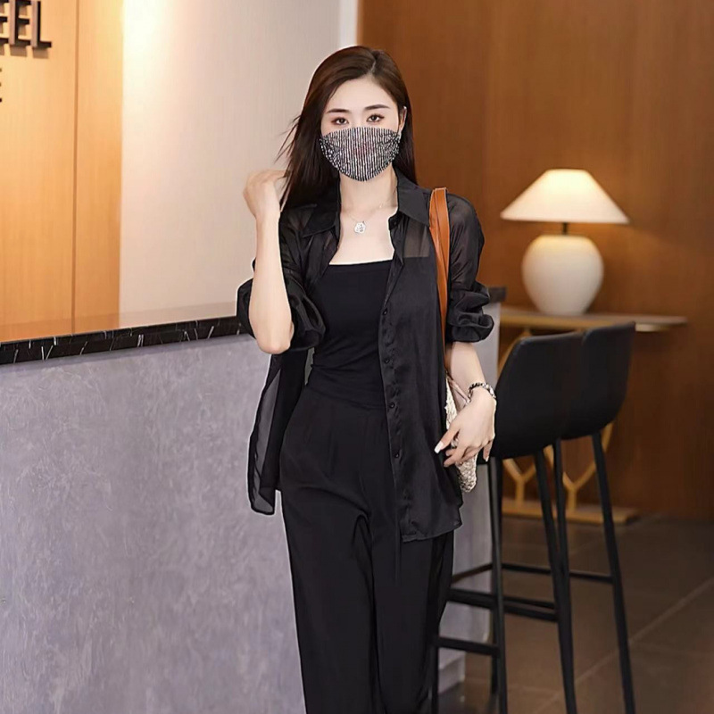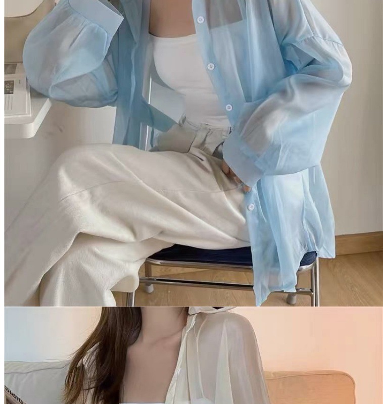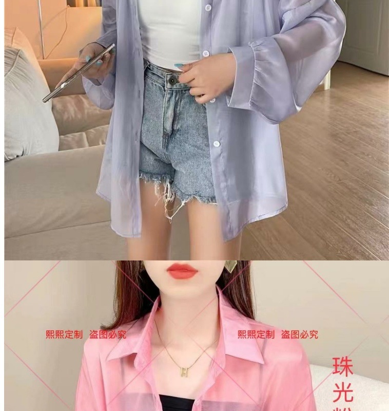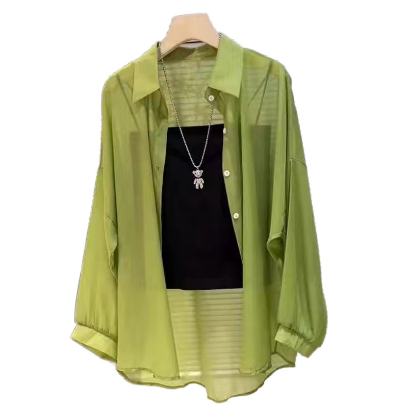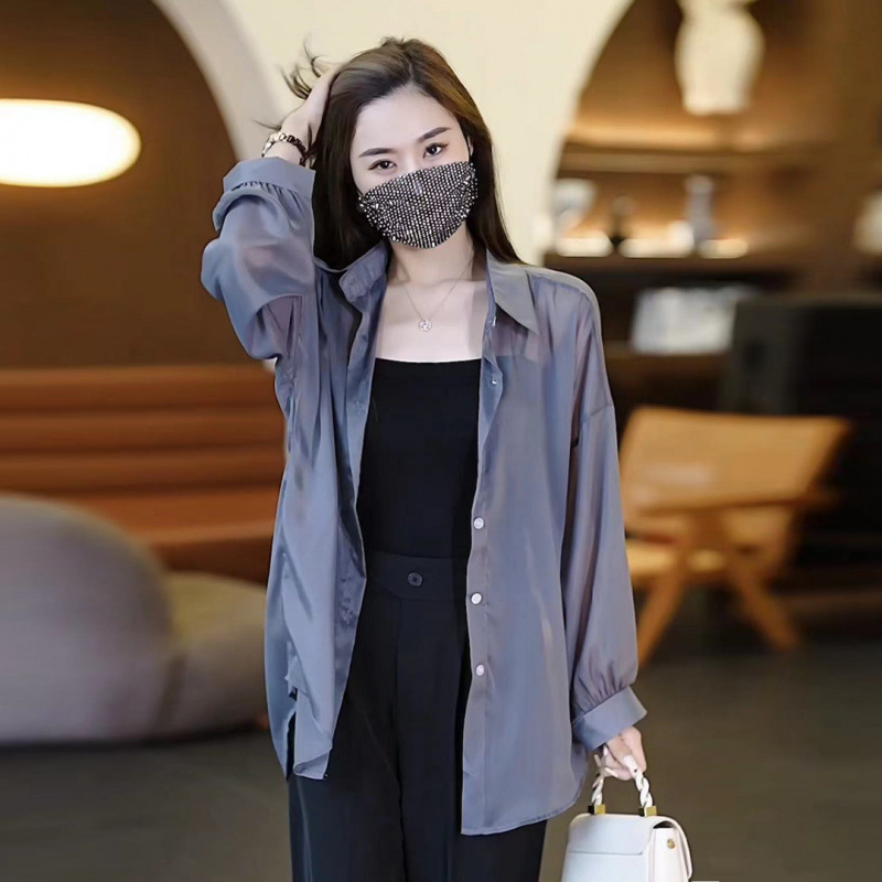 珠光纱夏季2025年新款宽松百搭时尚中长衬衫薄款通勤防晒衣跨境