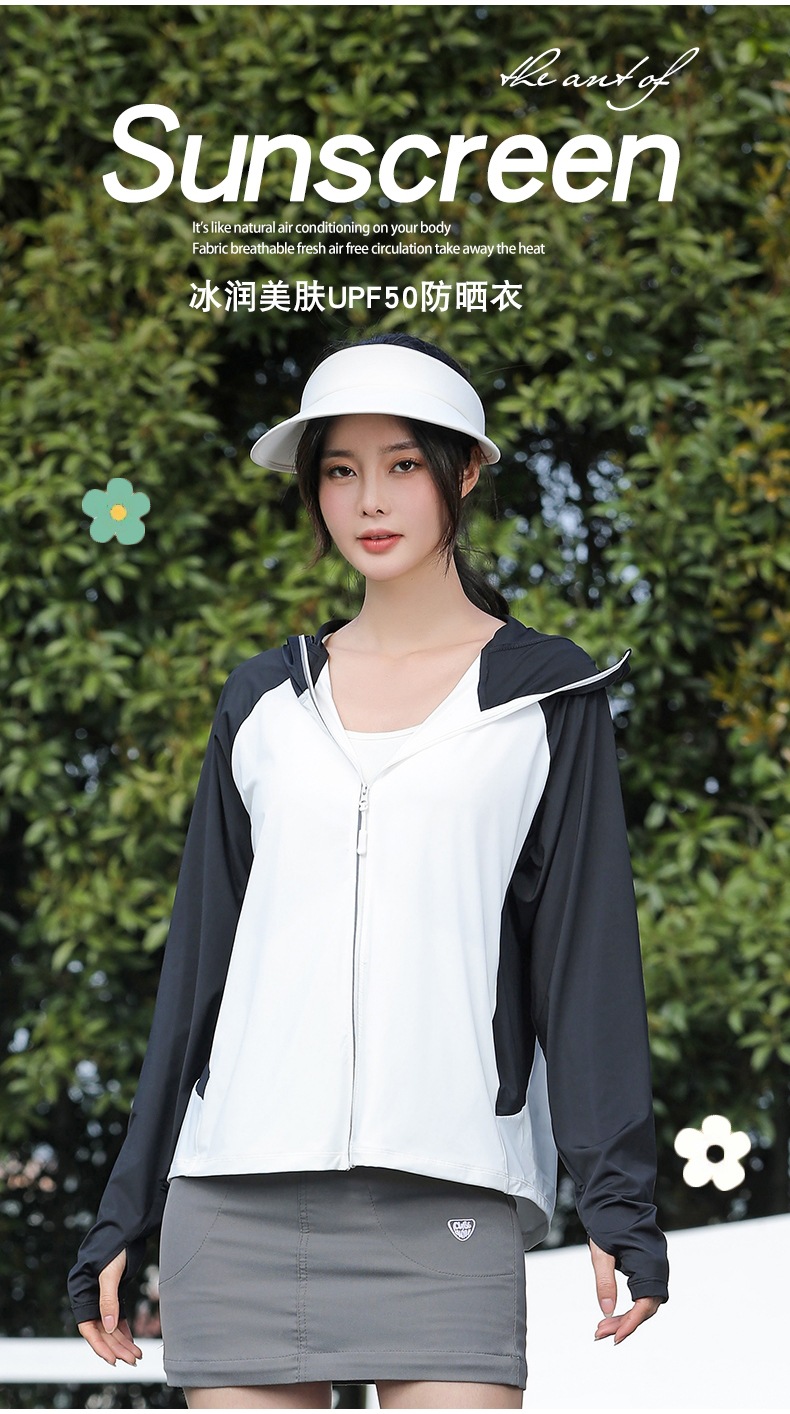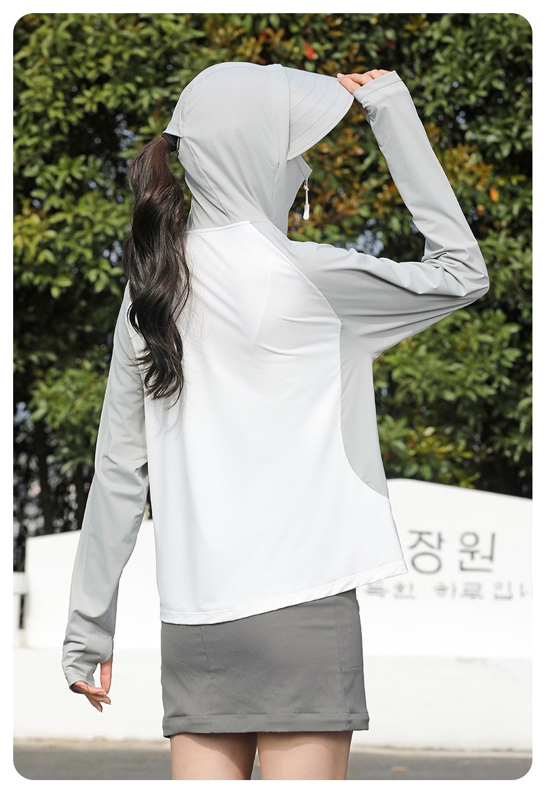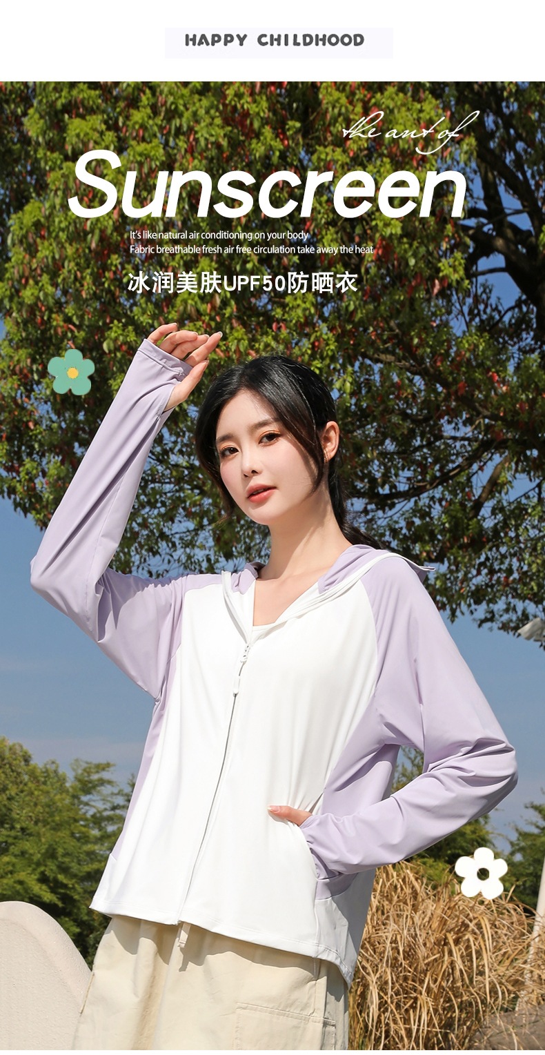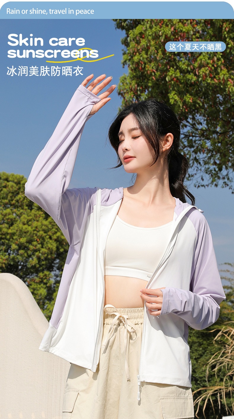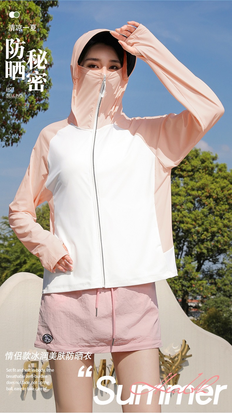 拼色冰感防晒衣服UPF50+防紫防护外线透气薄拉链带帽男女同款新款