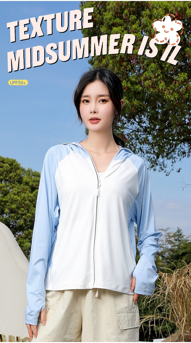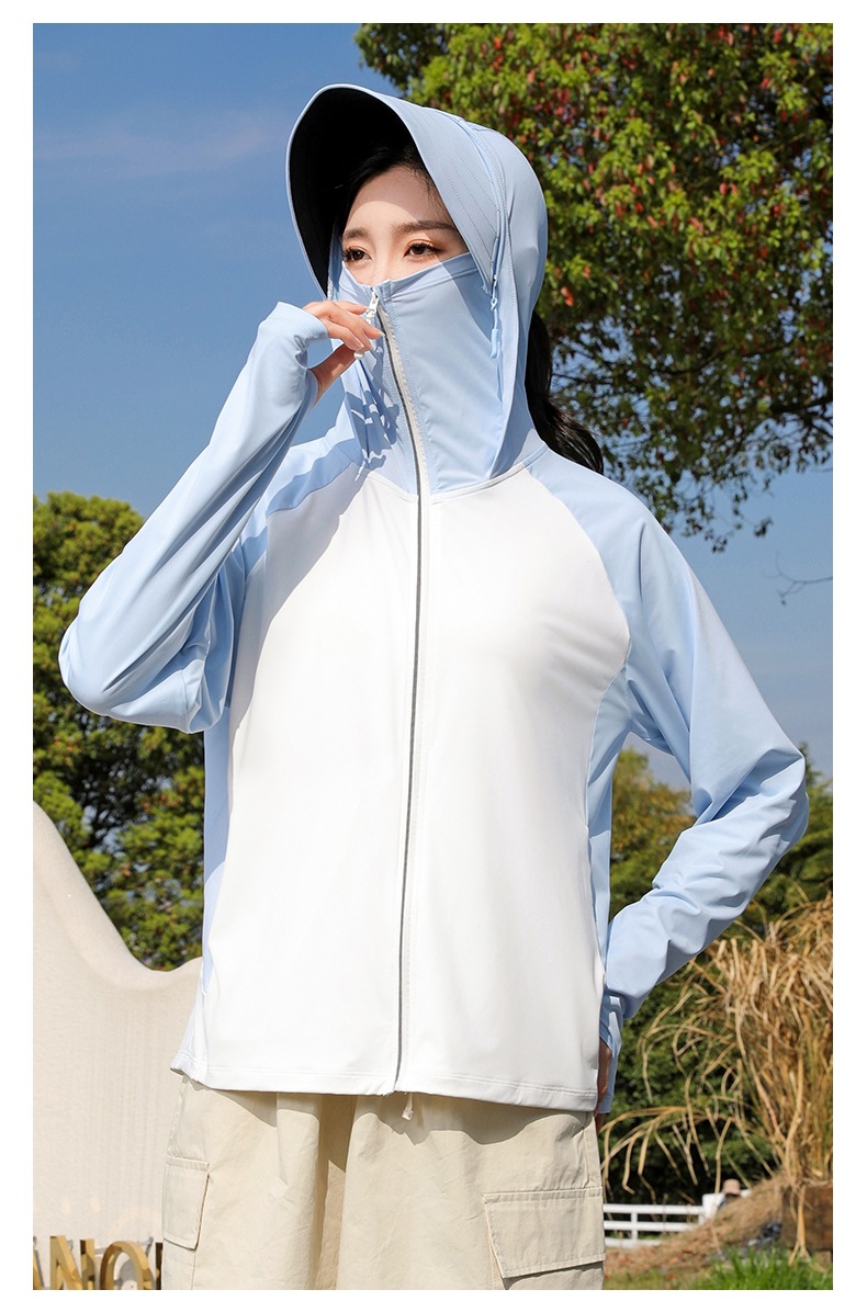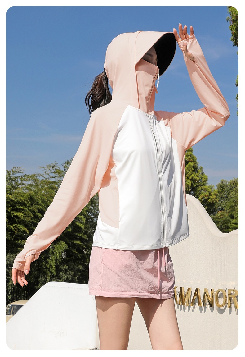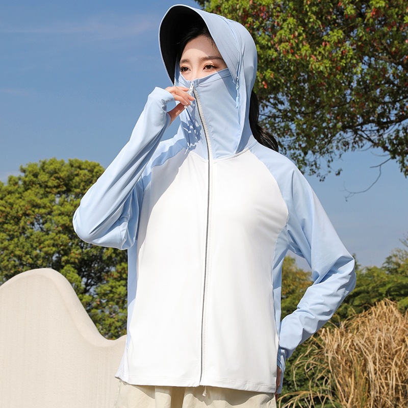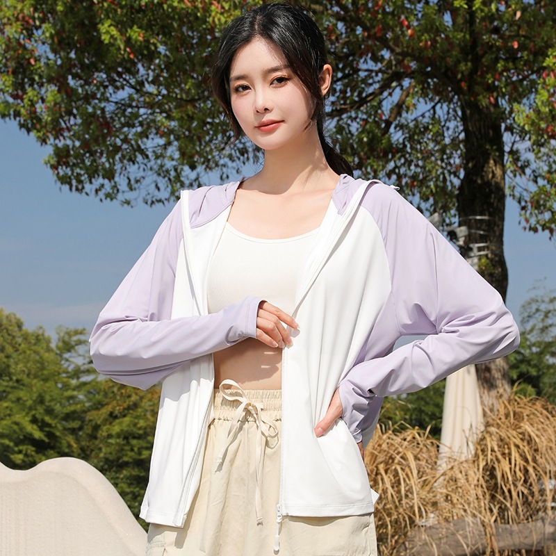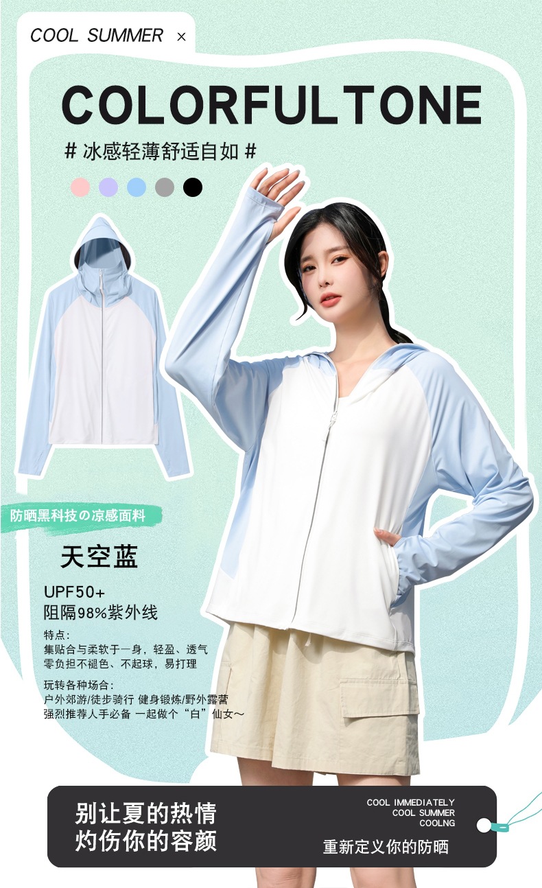 拼色冰感防晒衣服UPF50+防紫防护外线透气薄拉链带帽男女同款新款