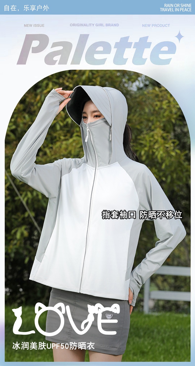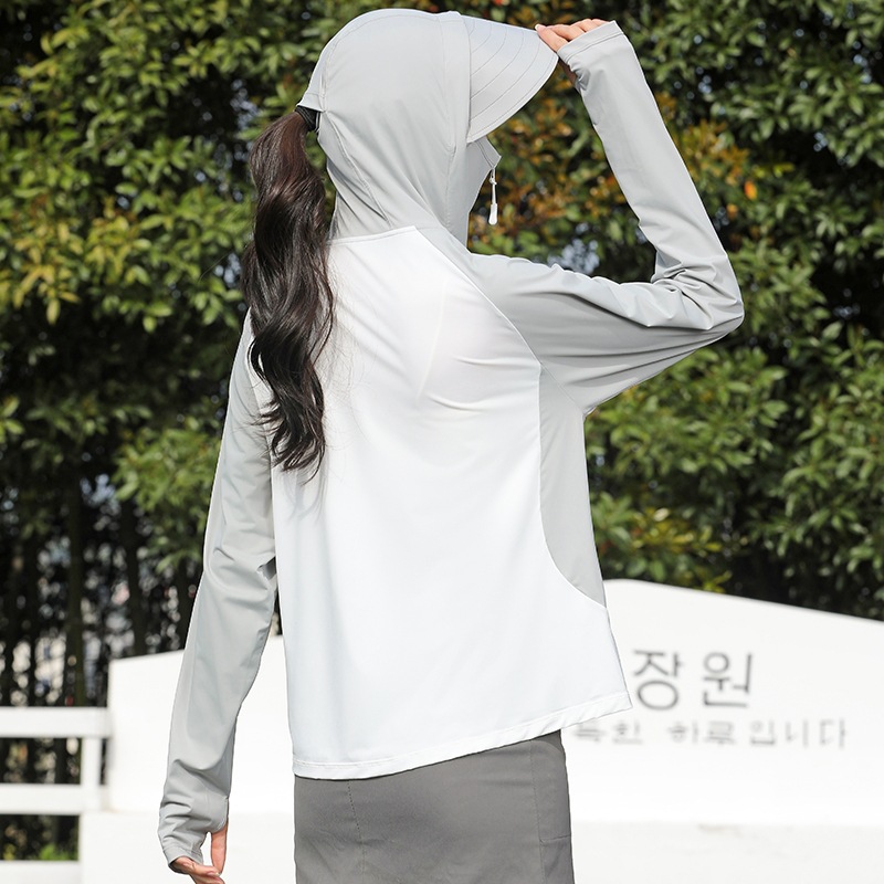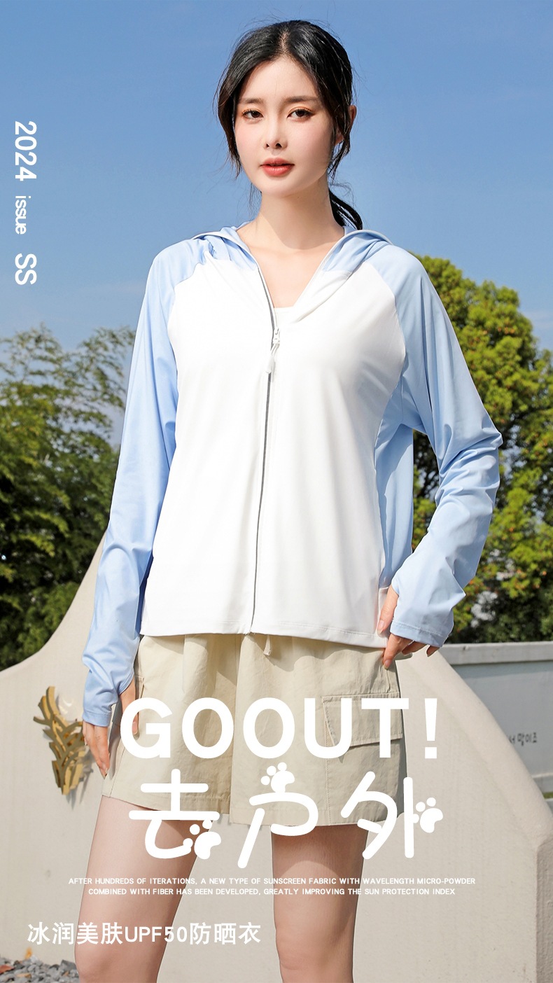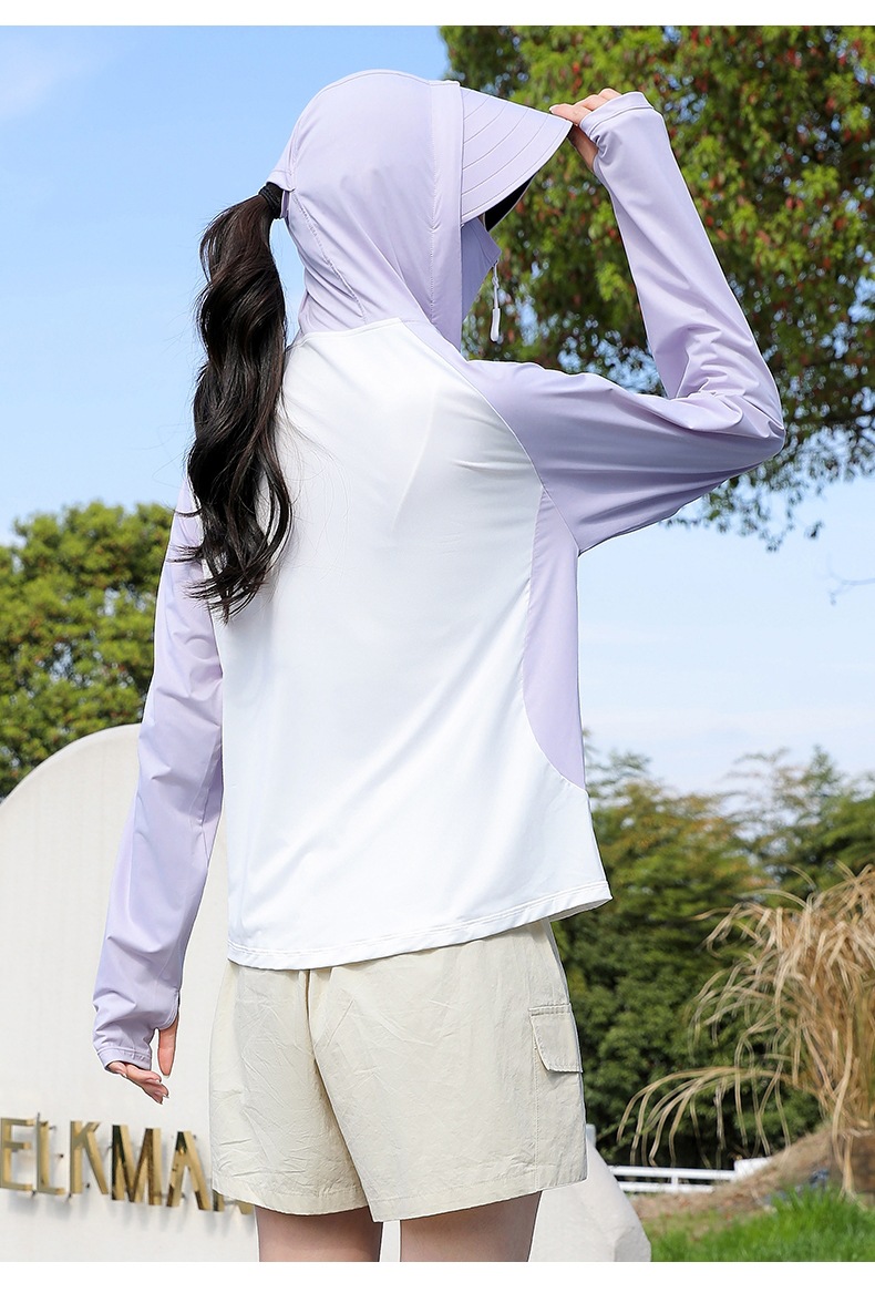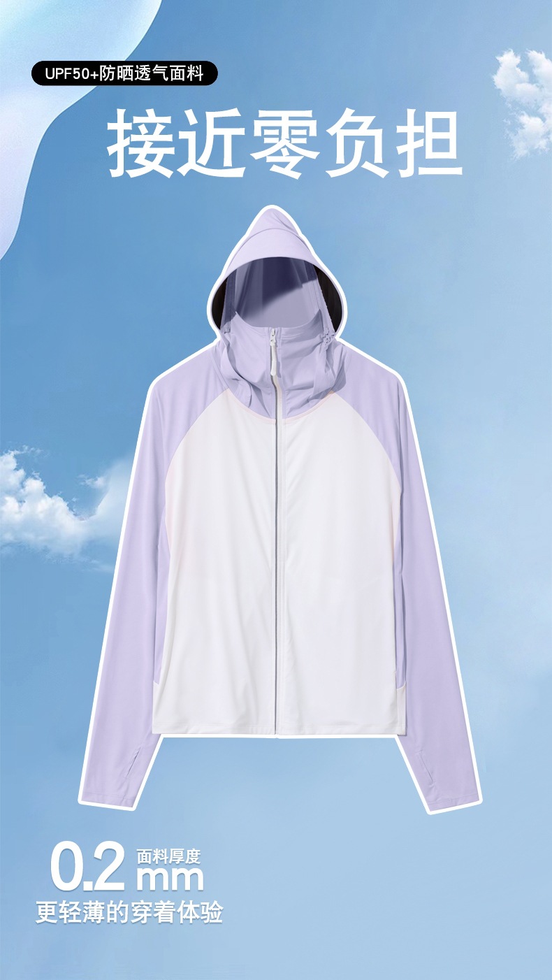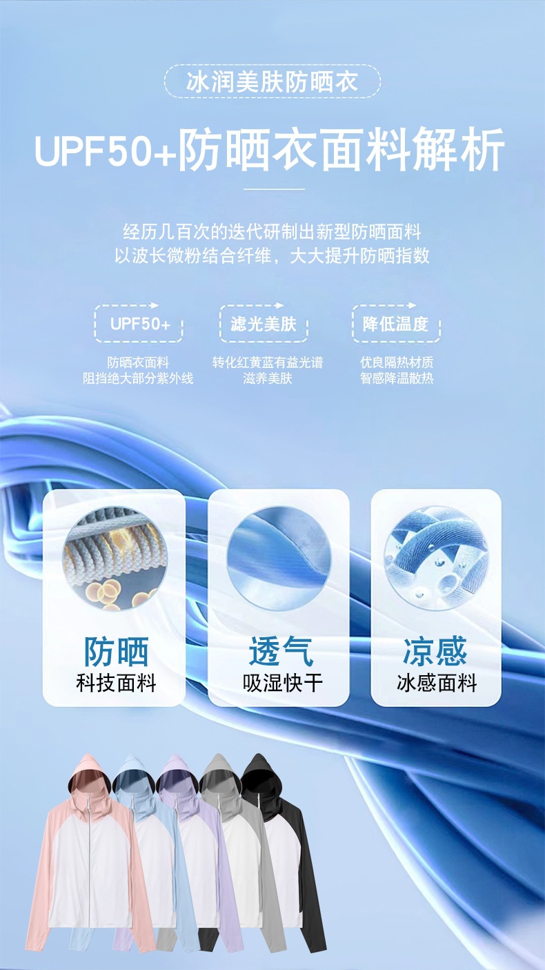 拼色冰感防晒衣服UPF50+防紫防护外线透气薄拉链带帽男女同款新款