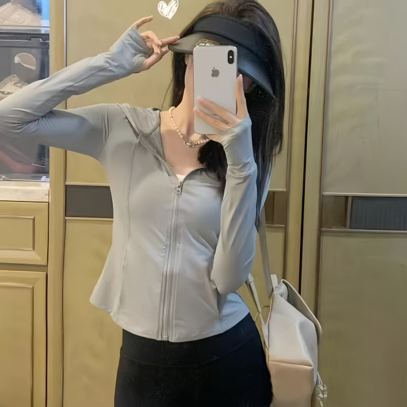 冰丝防晒衣女夏季薄款透气修身小蛮腰凉感外穿防晒服开衫外套上衣