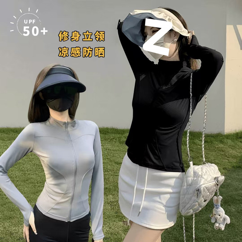 立领衣冰丝速干短款瑜伽服女夏薄款户外骑行跑步防紫外线上衣包邮