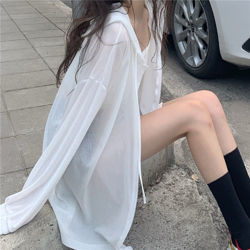 防晒衣女外穿冰丝超轻薄款连帽开衫清凉外套夏韩版长袖宽松上衣