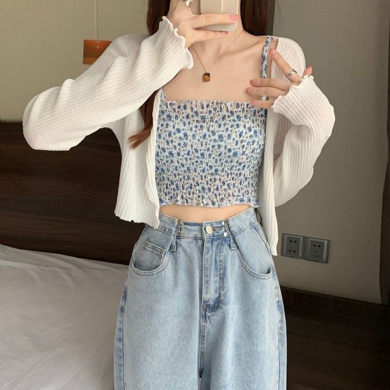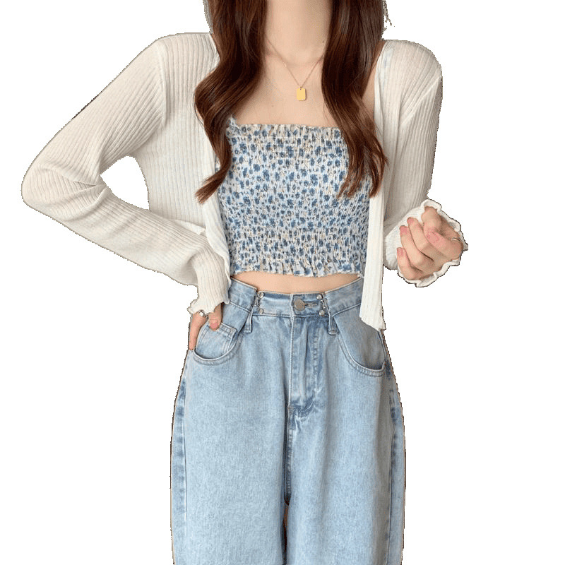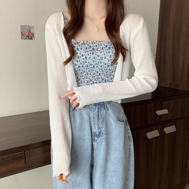 纯色辣妹外搭开衫薄款女夏搭配吊带小披肩bm小个子短款防晒衣罩衫