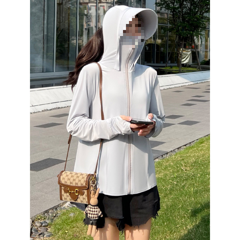 夏季中长款防晒衣女外穿新款户外防紫外线冰丝凉感透气防晒服厂家