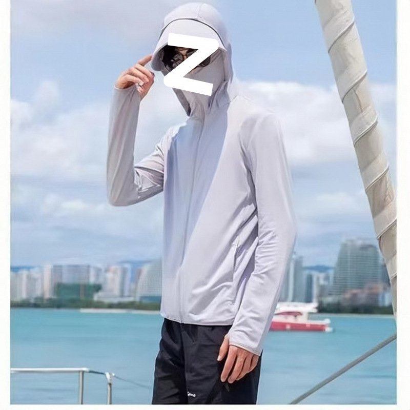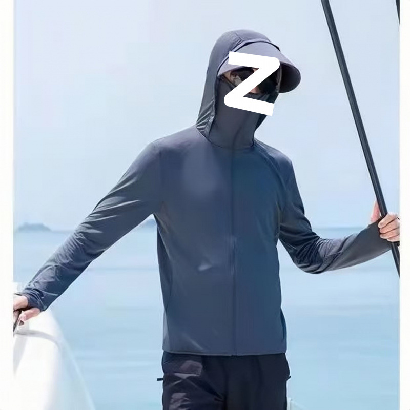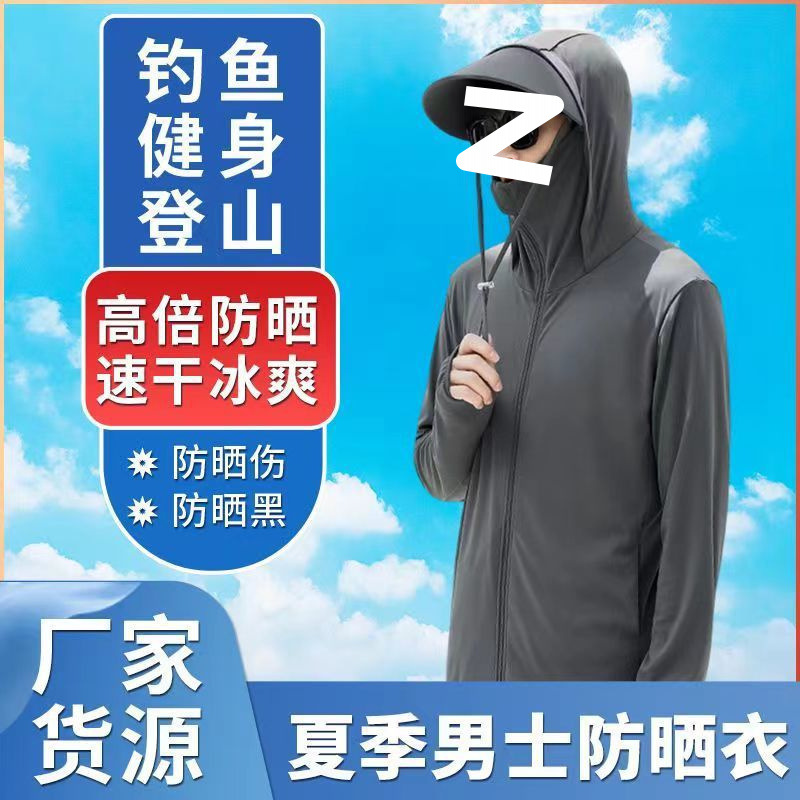 冰丝防晒衣夏季男款防紫外线钓鱼遮阳防晒衣帽遮脸一体皮肤衣户外