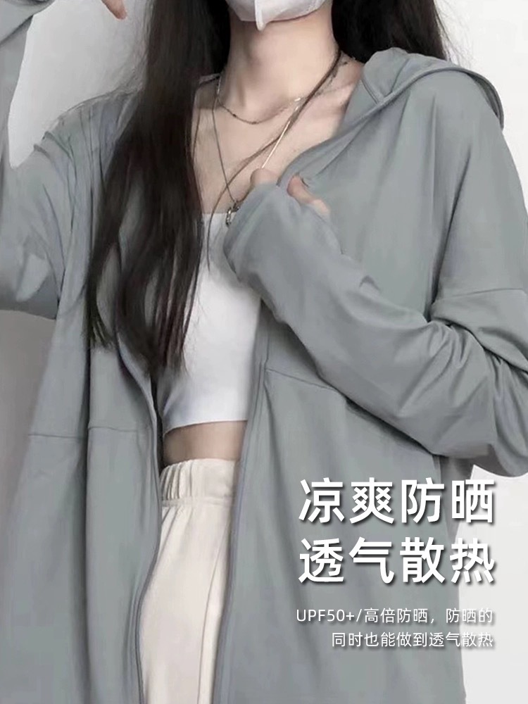 灰色冰丝防晒衣女夏季新款户外透气宽松学生开衫防紫外线轻薄外套
