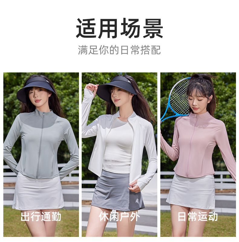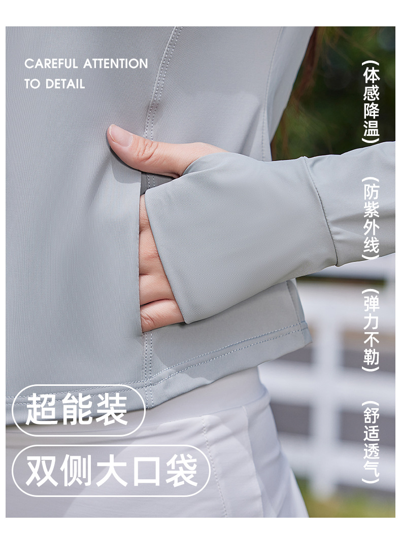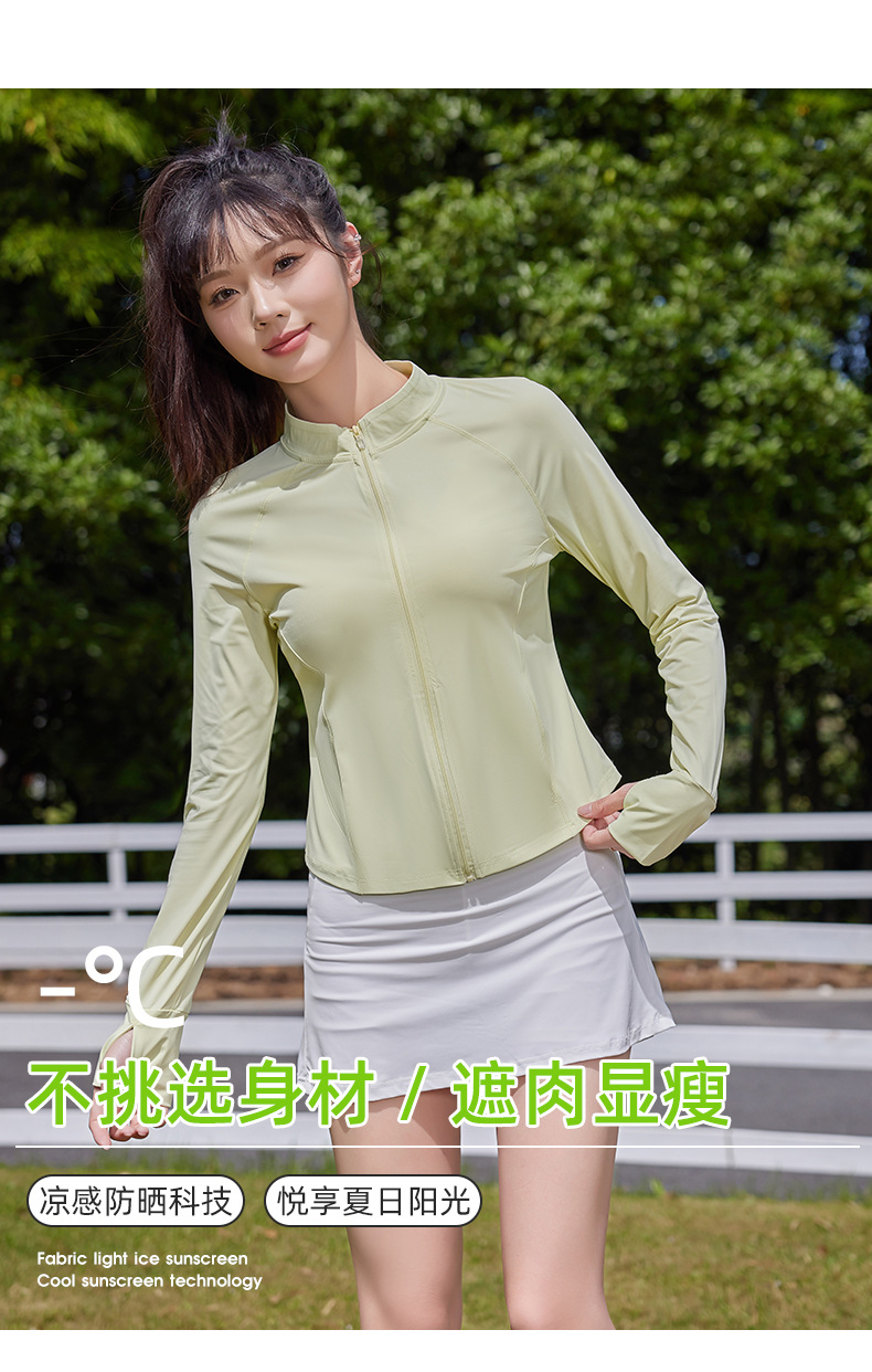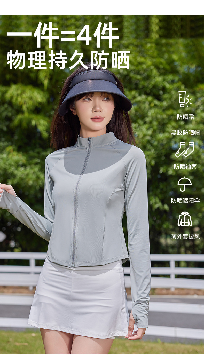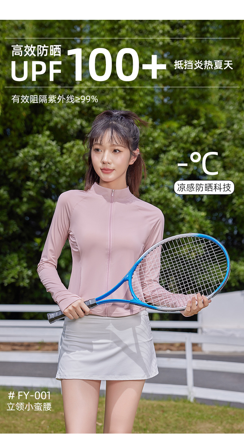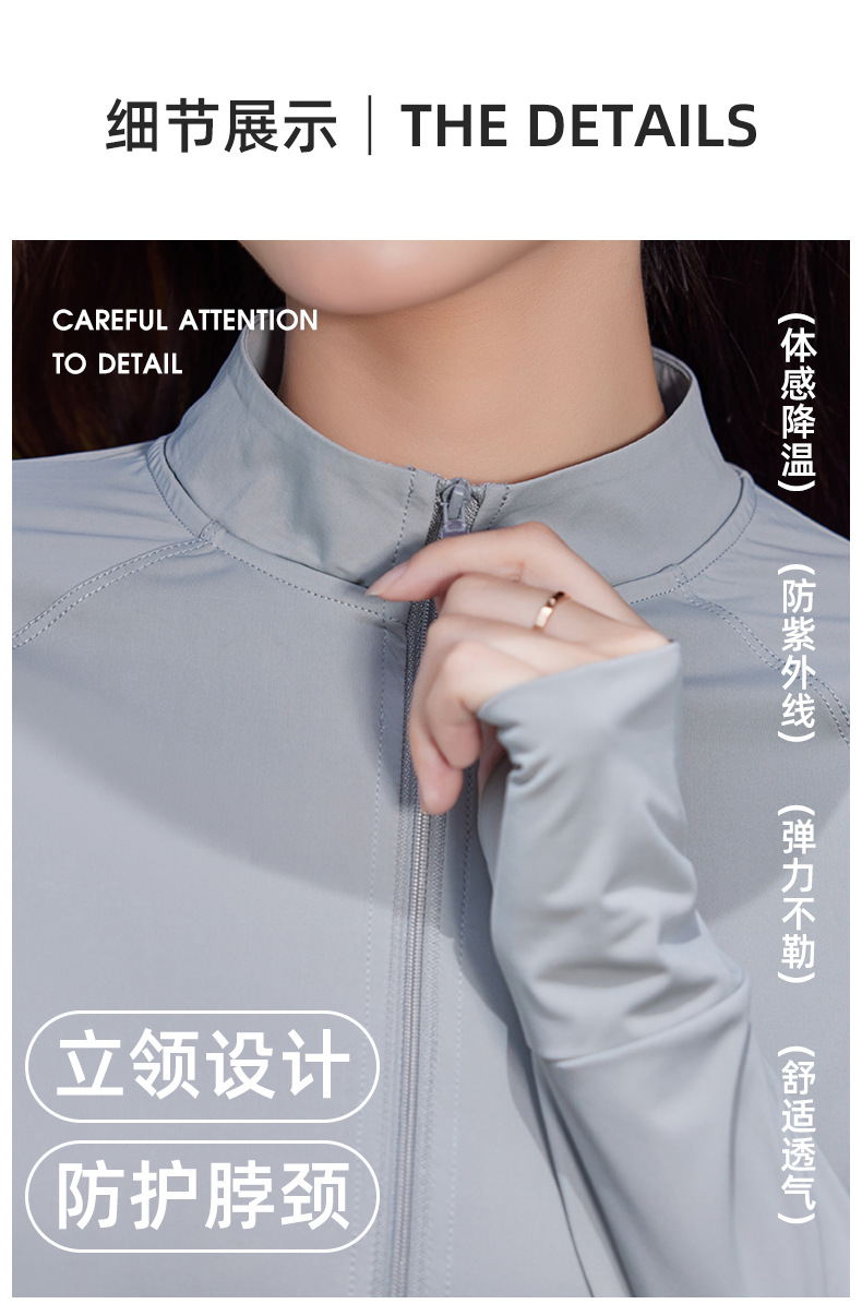 锦纶防晒衣女立领小蛮腰瑜伽服户外出行旅防紫外线修身开衫外套女