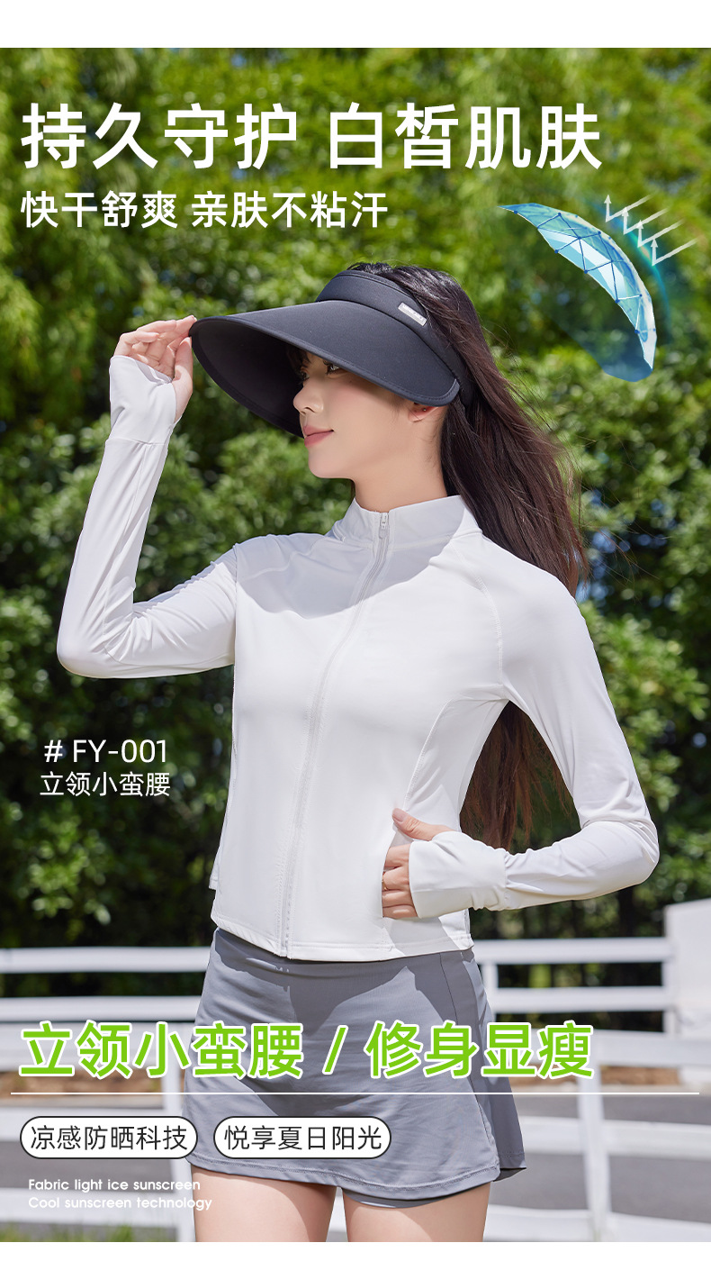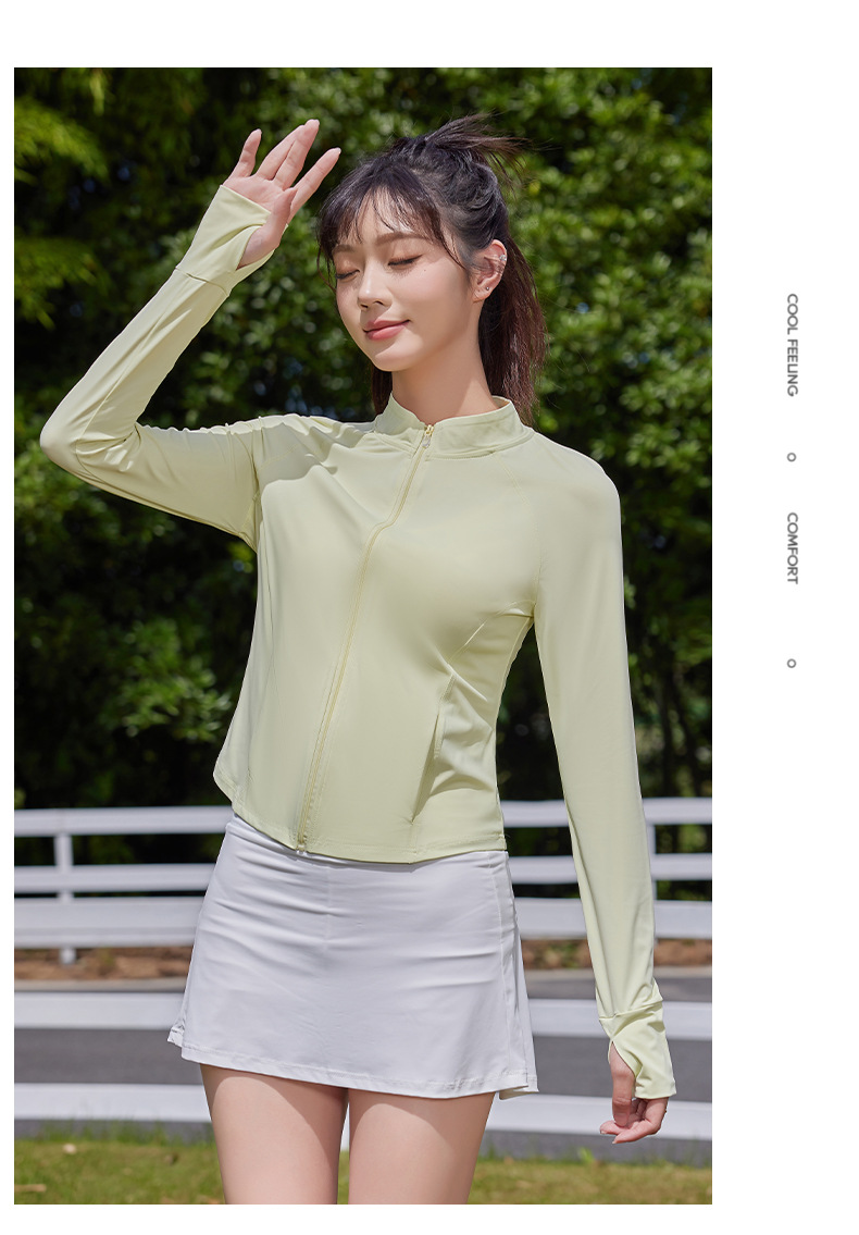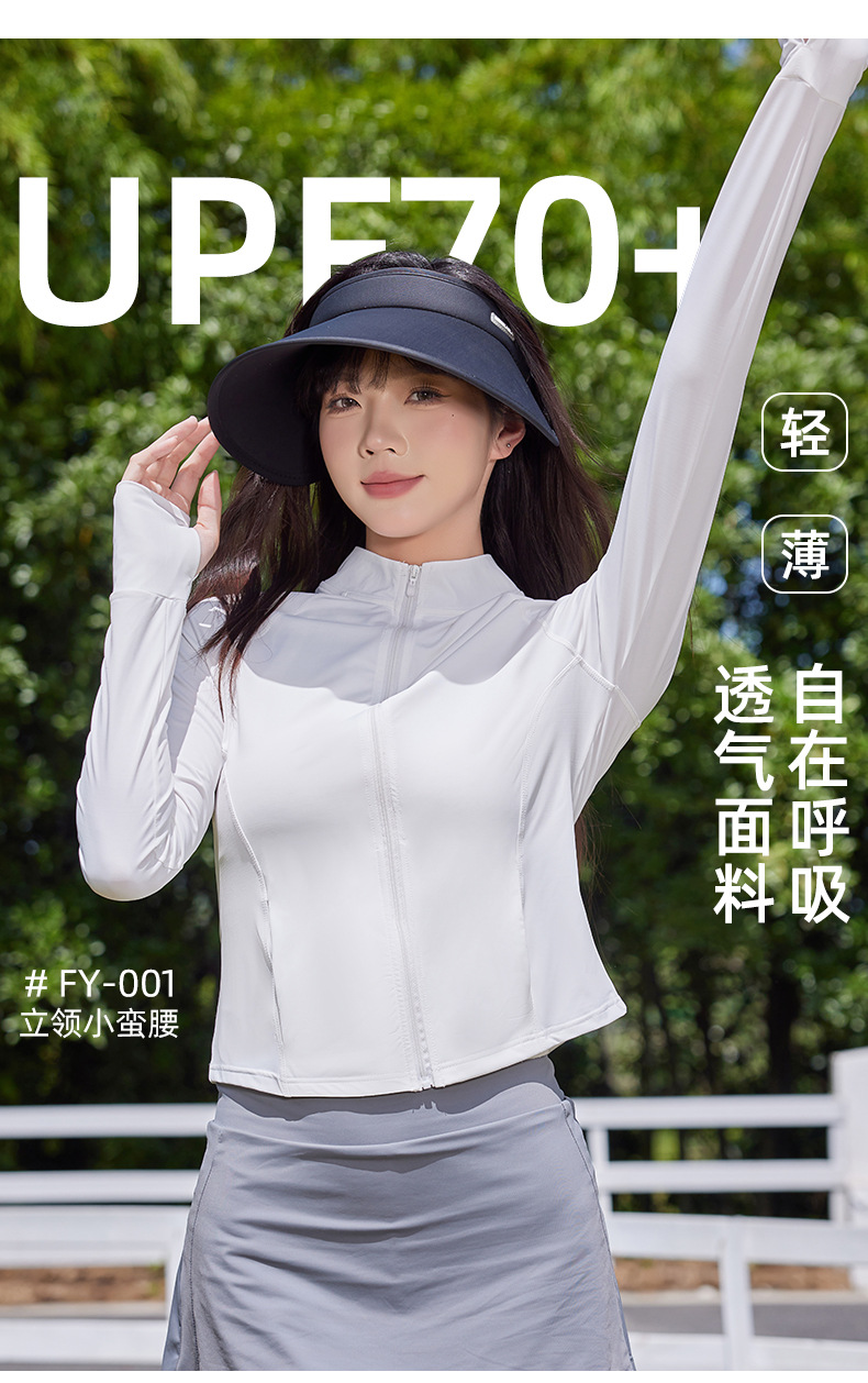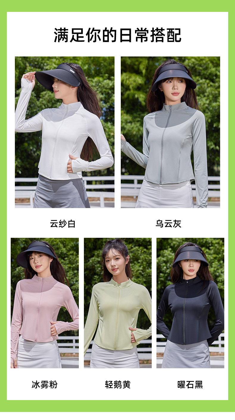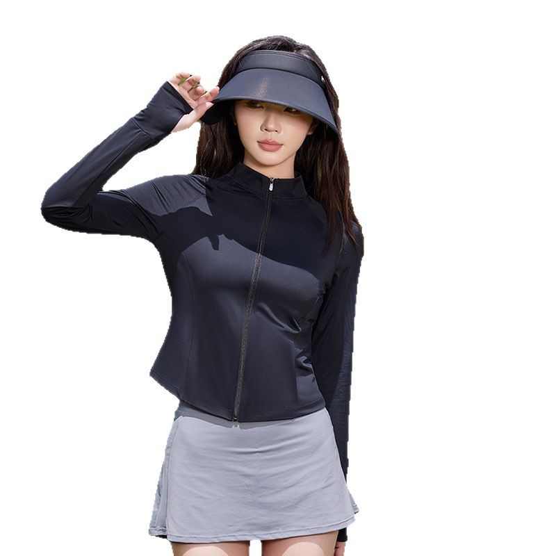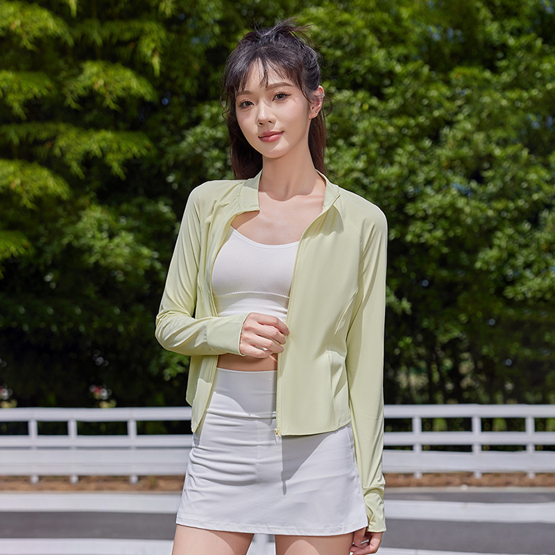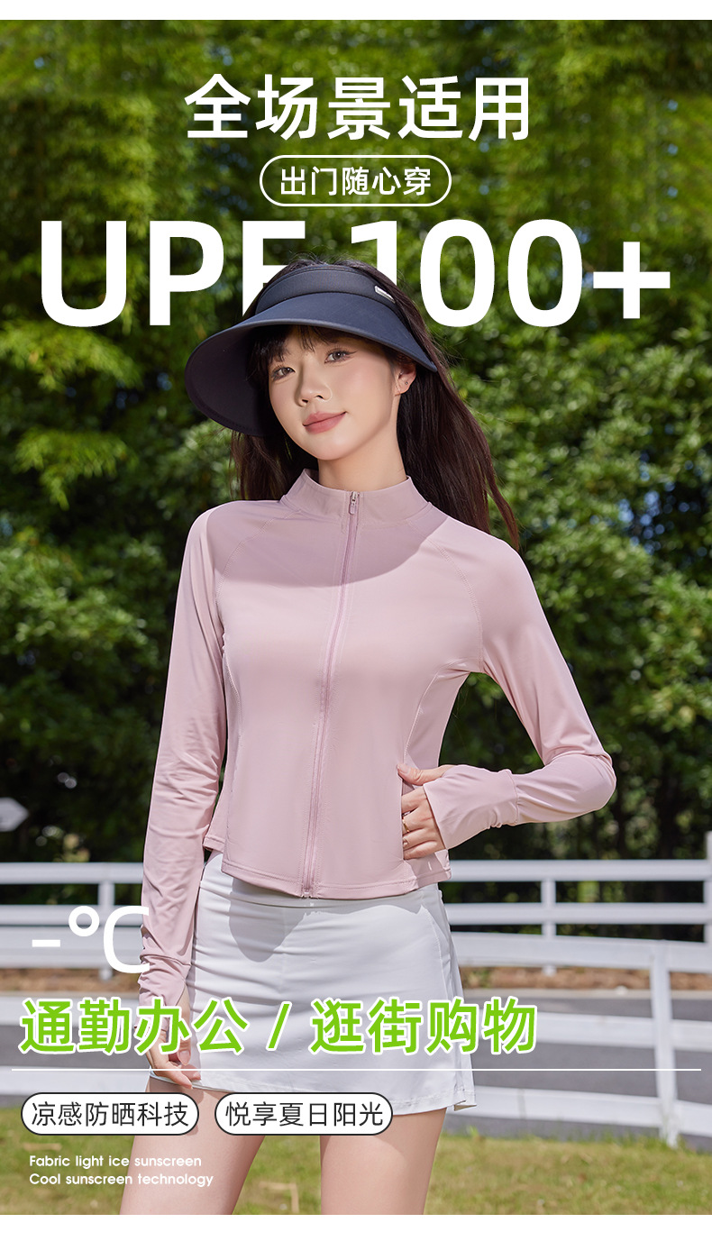 锦纶防晒衣女立领小蛮腰瑜伽服户外出行旅防紫外线修身开衫外套女