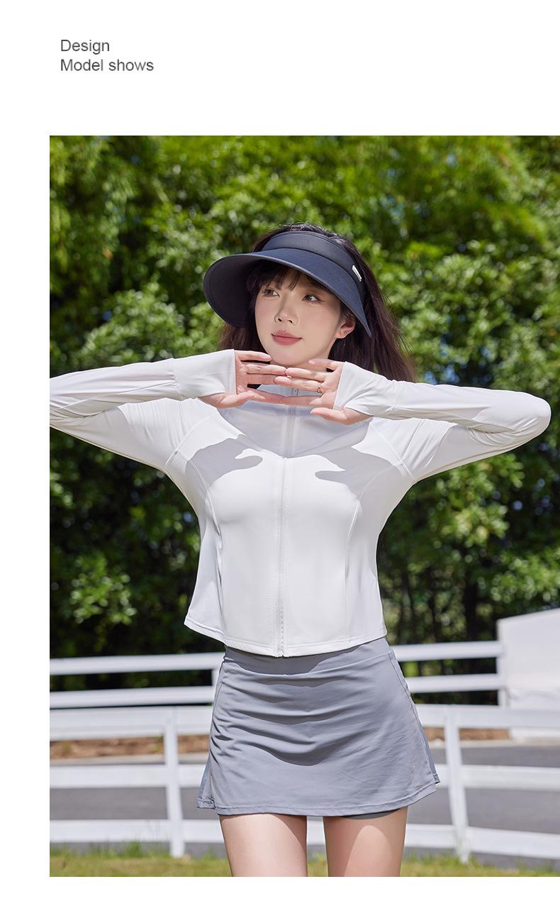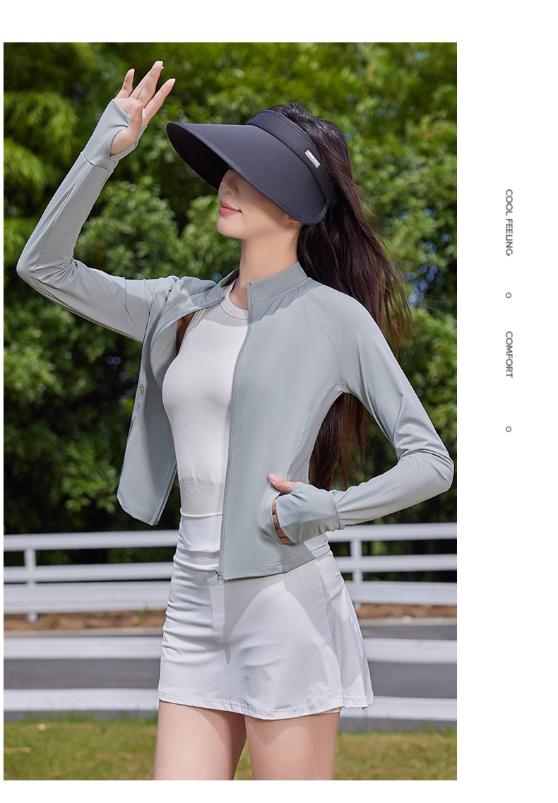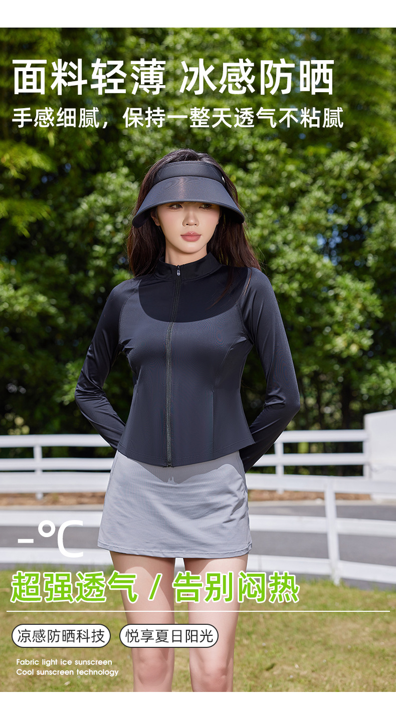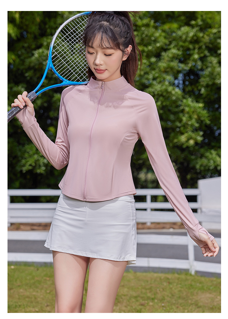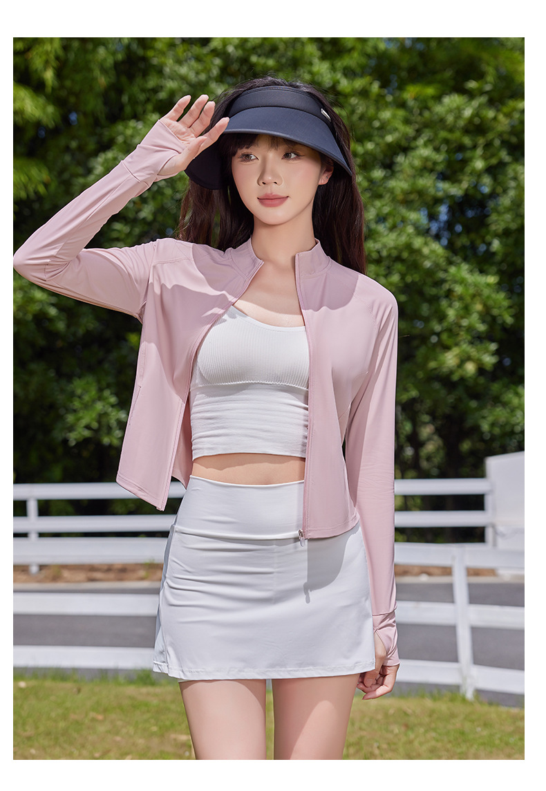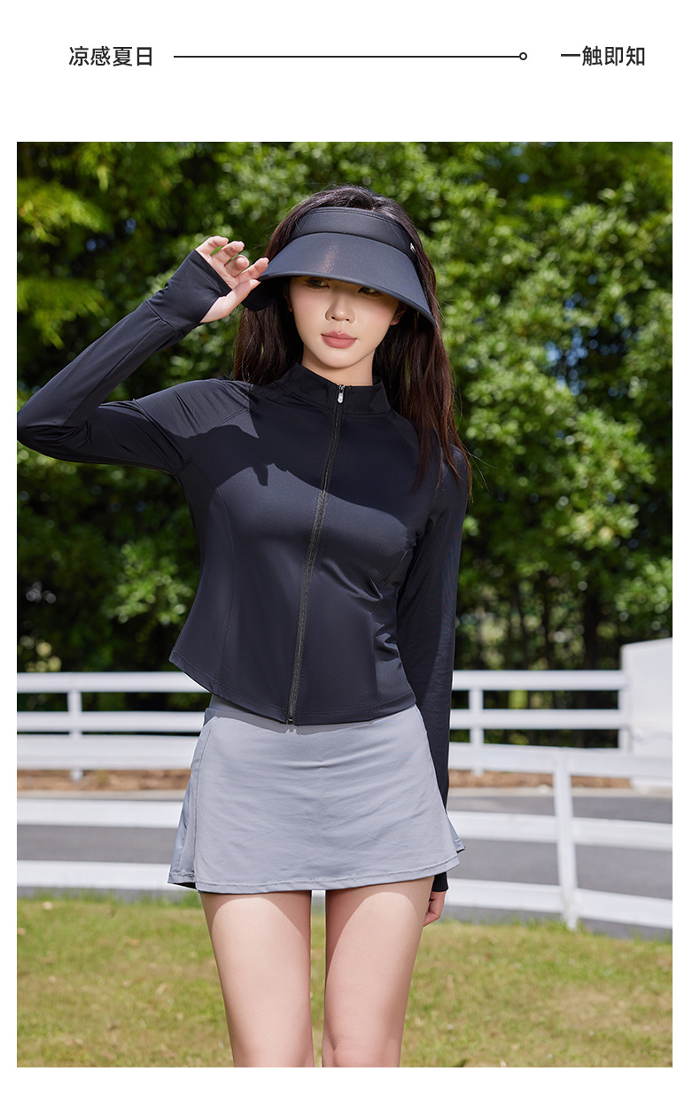 锦纶防晒衣女立领小蛮腰瑜伽服户外出行旅防紫外线修身开衫外套女