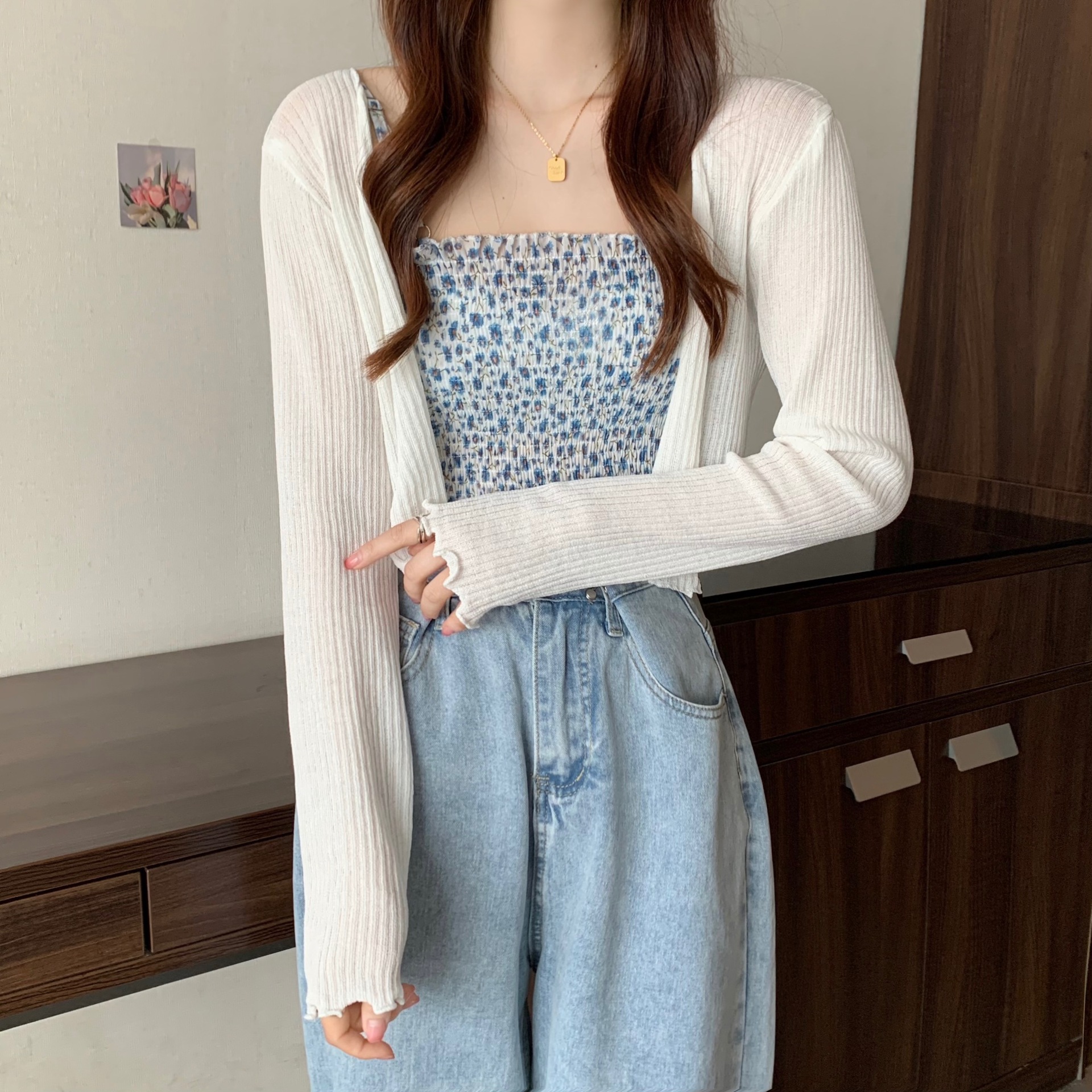 外搭开衫薄款女春夏长袖搭配吊带小披肩bm小个子短款防晒衣罩衫