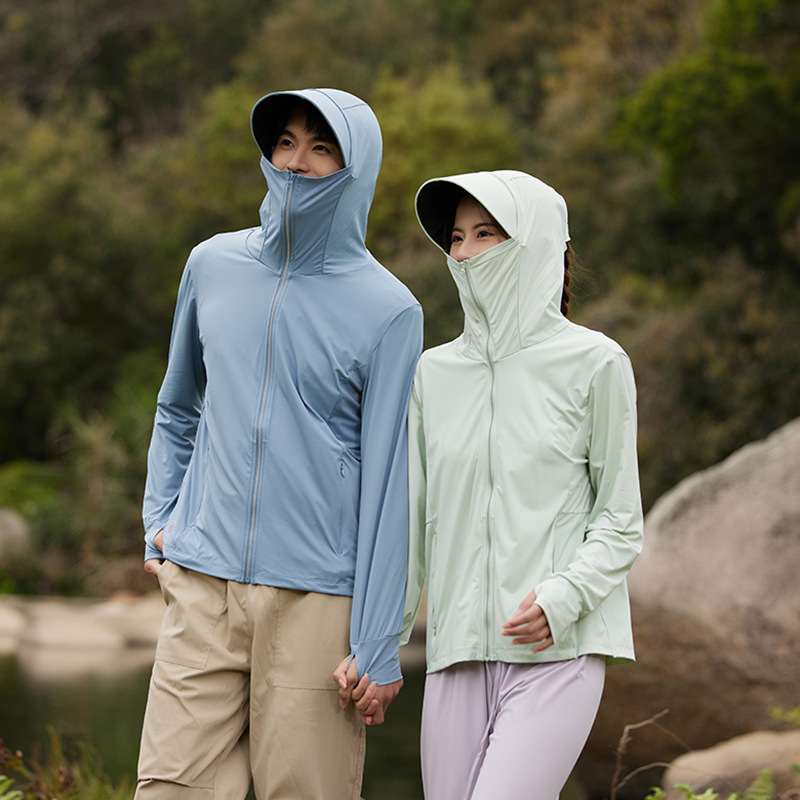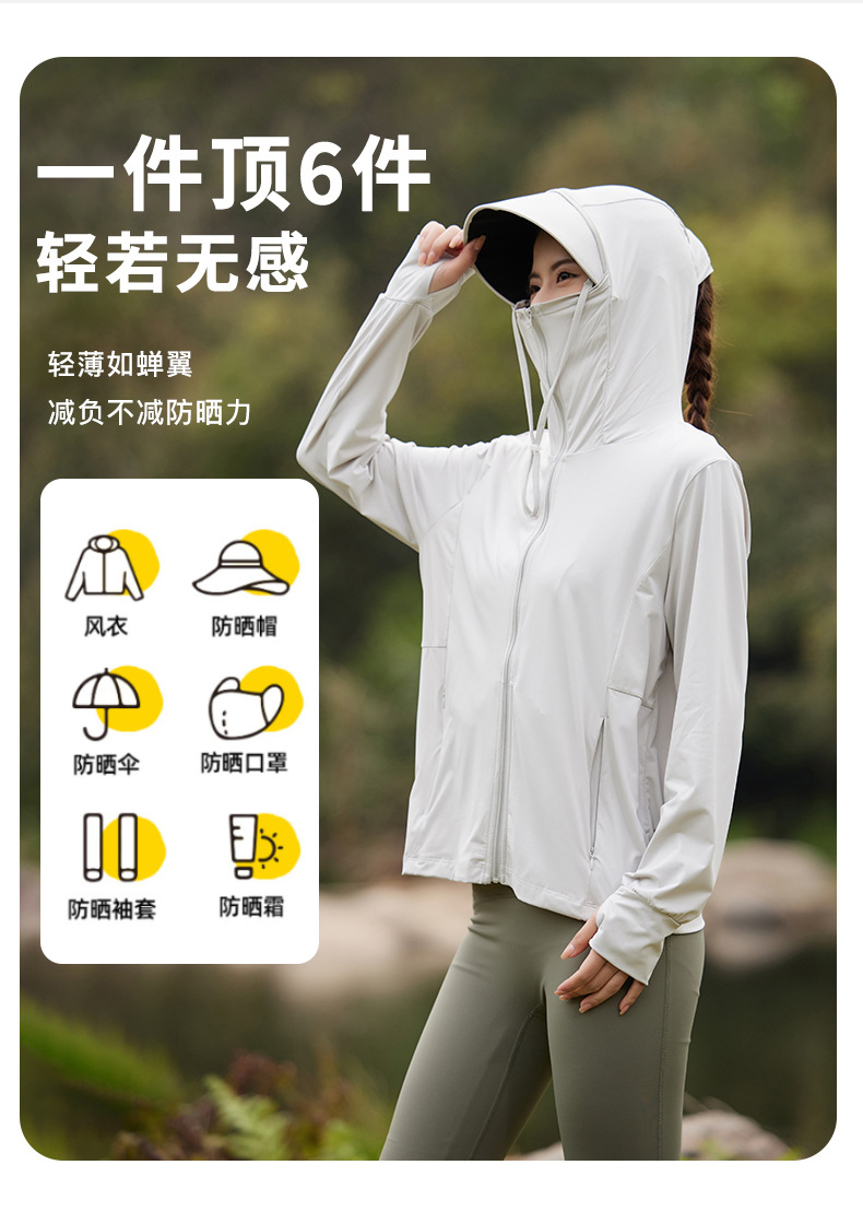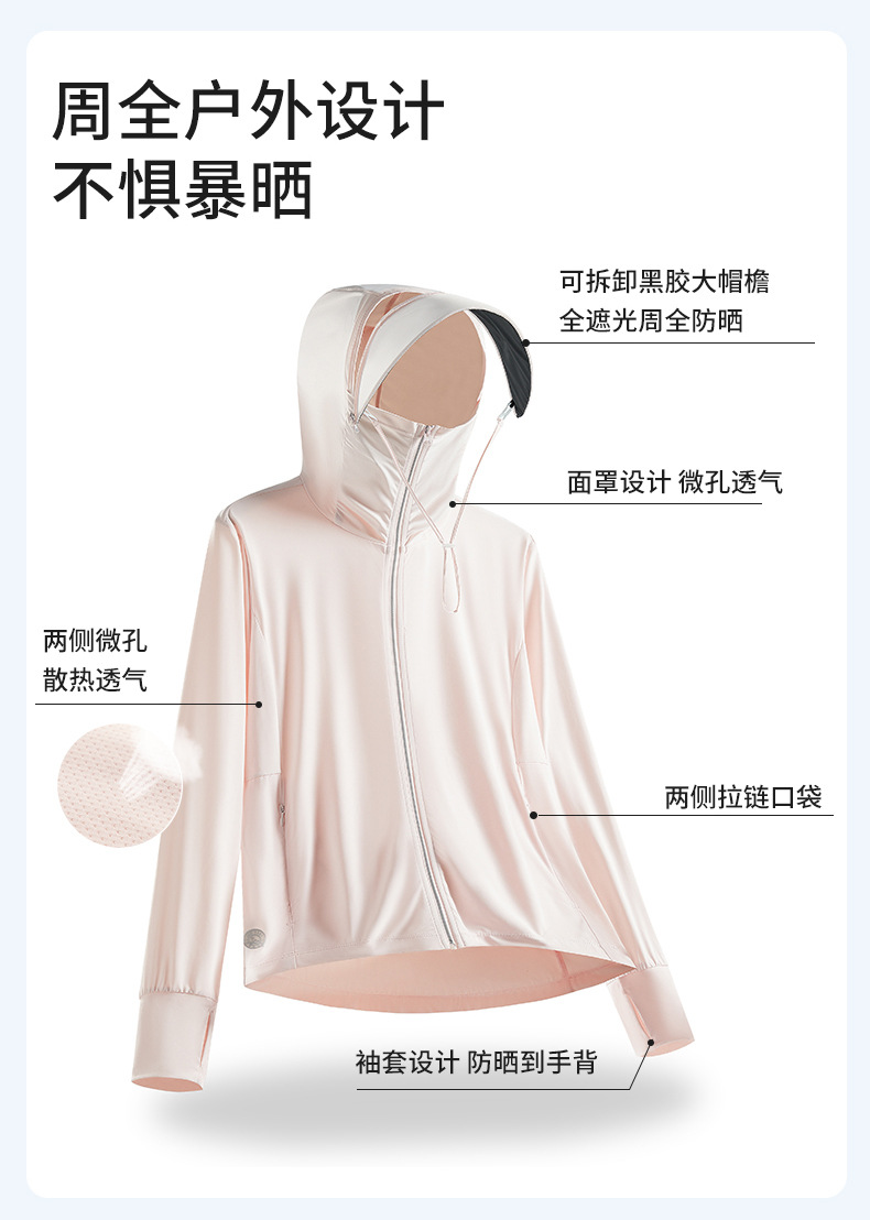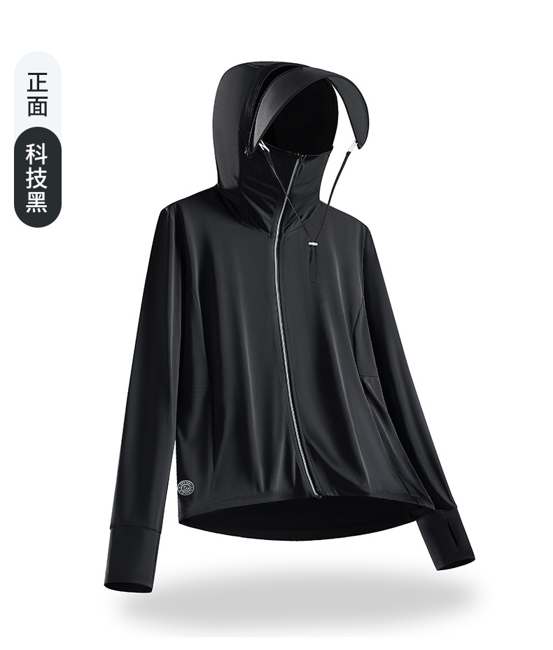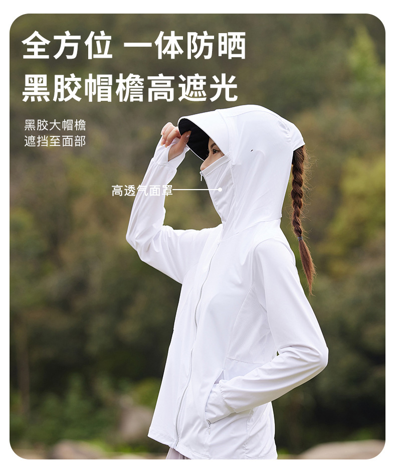防晒衣女冰丝凉感透气黑胶大帽檐防紫外线新款长袖原纱型防晒服男