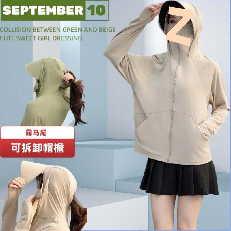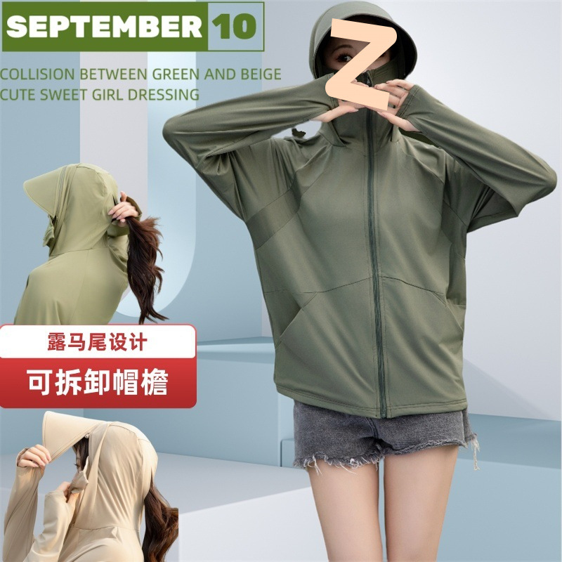 2025夏季冰丝防紫外线薄款防晒衣UPF50+遮阳透气外套可拆卸帽沿