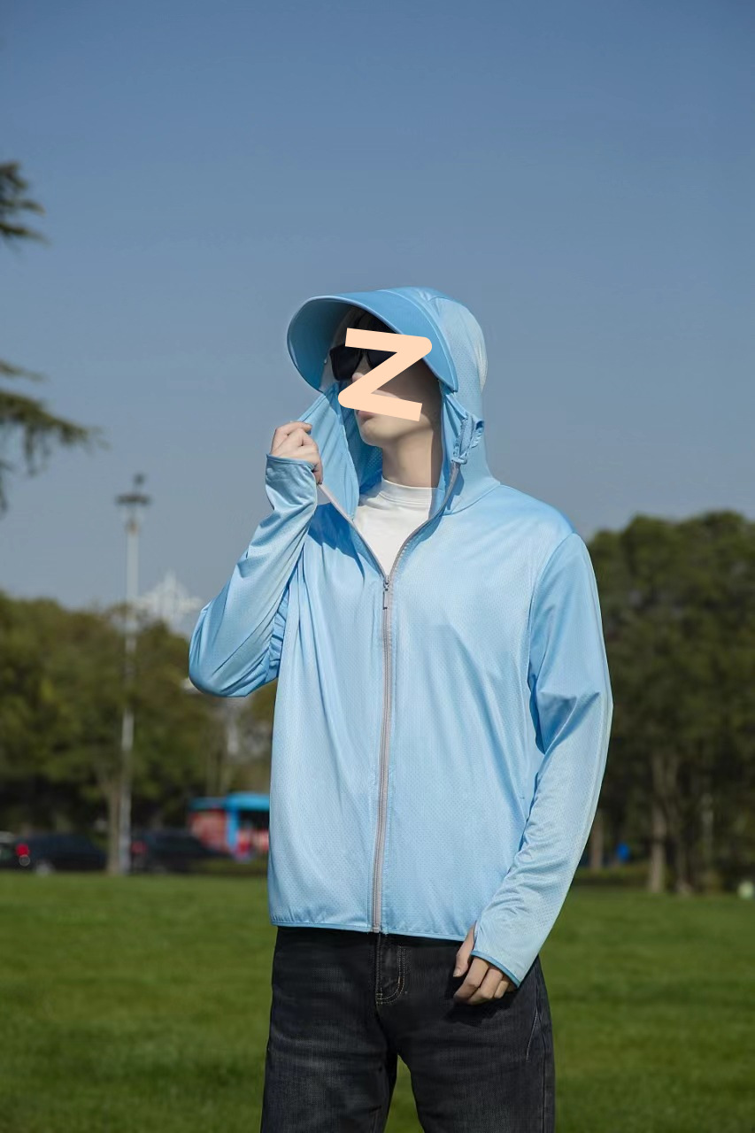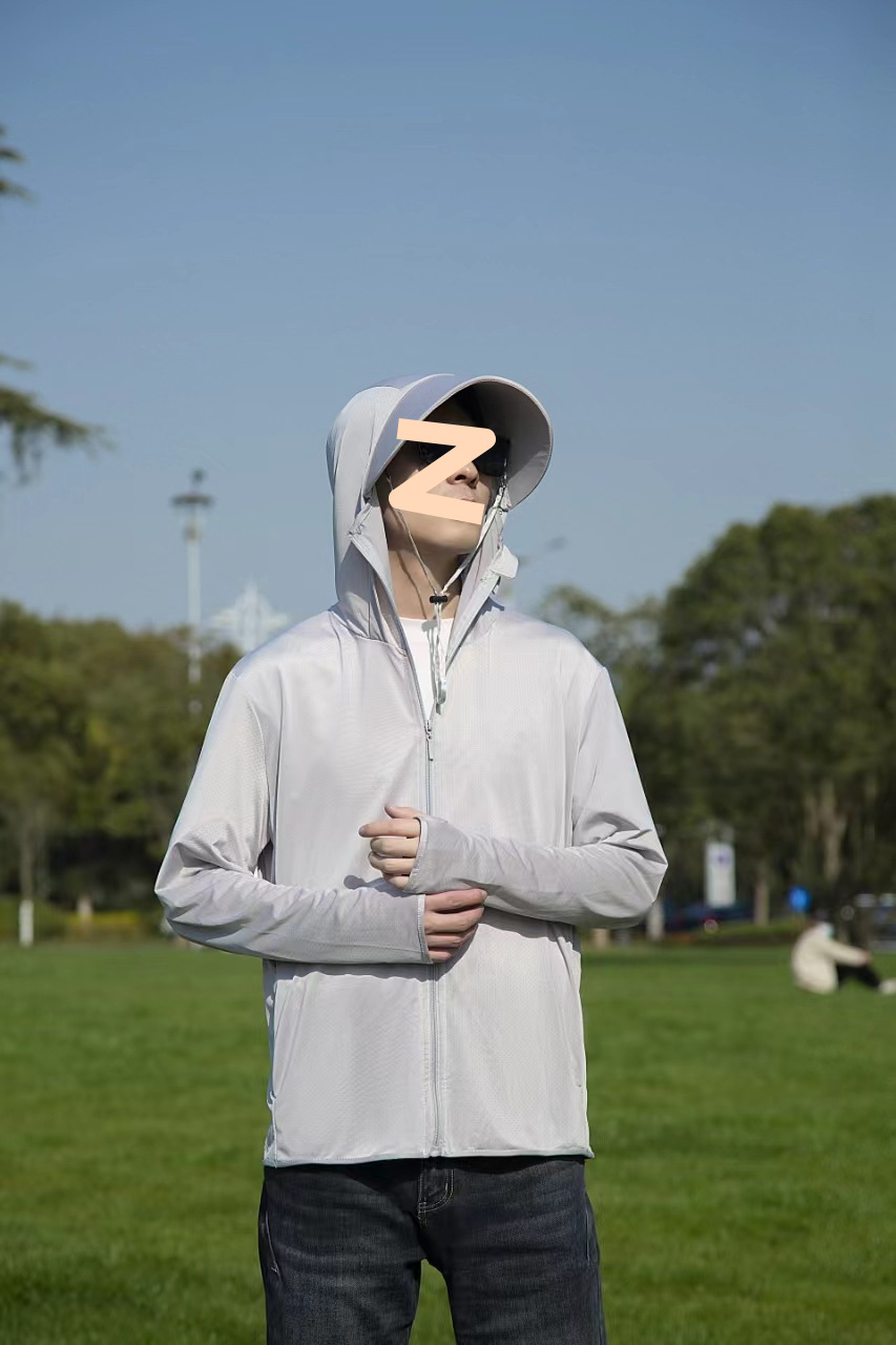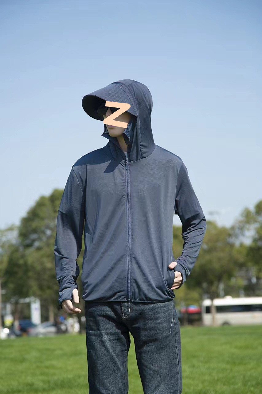 批发夏季冰丝防晒衣女可拆卸帽檐防紫外线透气速干钓鱼服男亚马逊