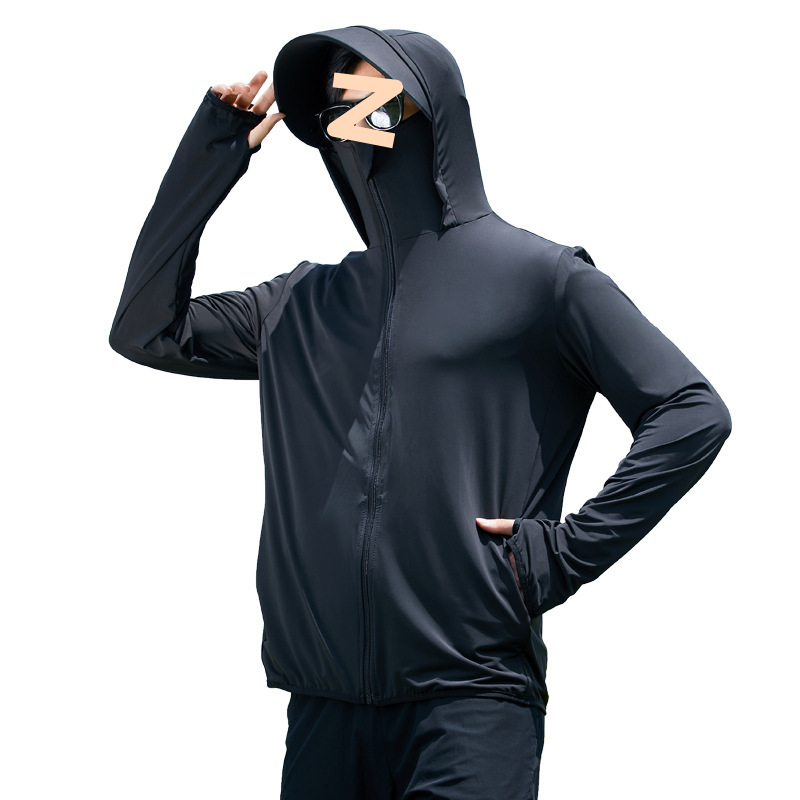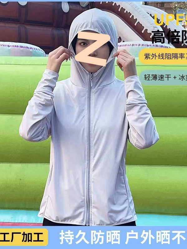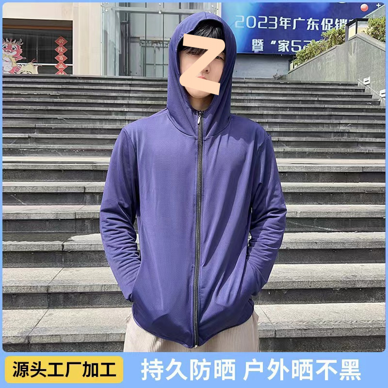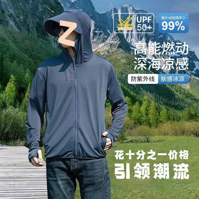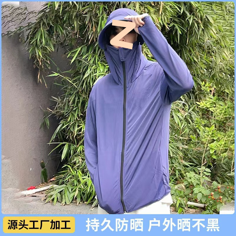 批发夏季冰丝防晒衣女可拆卸帽檐防紫外线透气速干钓鱼服男亚马逊