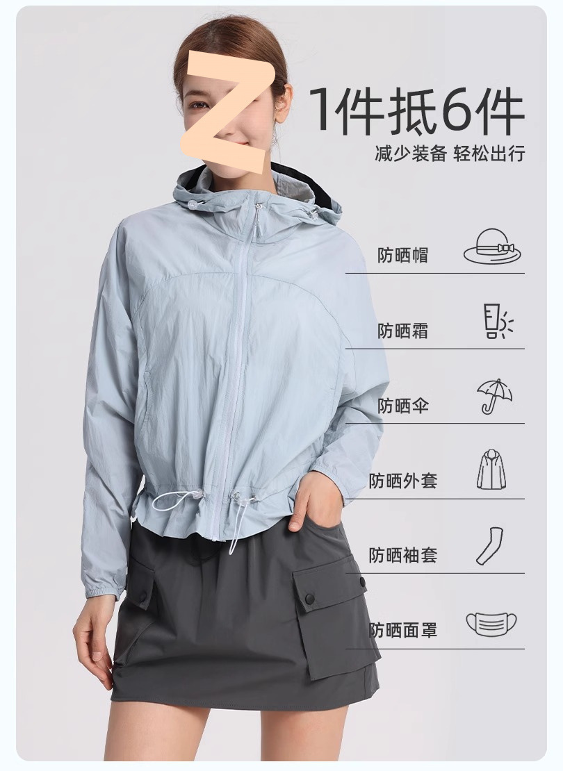 轻壳防晒衣女春夏透气速干防紫外线UPF50+透气短款收腰防晒服批发