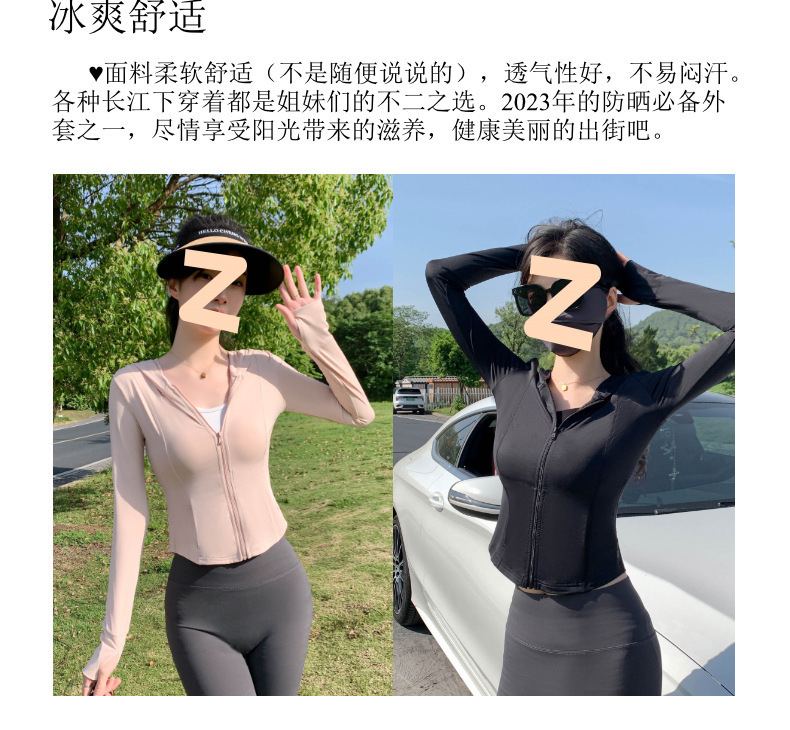 防晒衣女夏季防紫外线锦纶原纱冰丝凉感瑜伽外套修身款透气防晒服