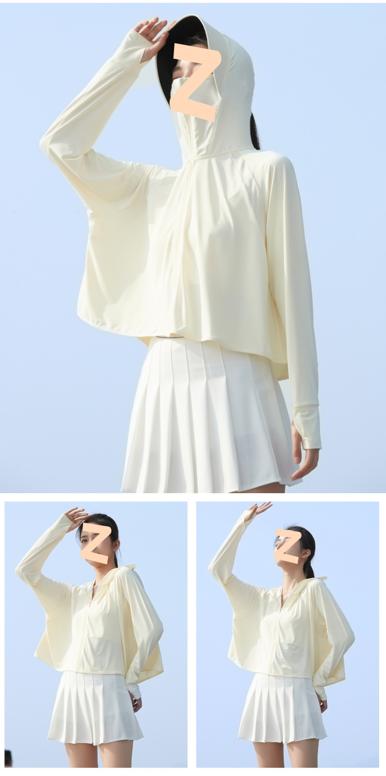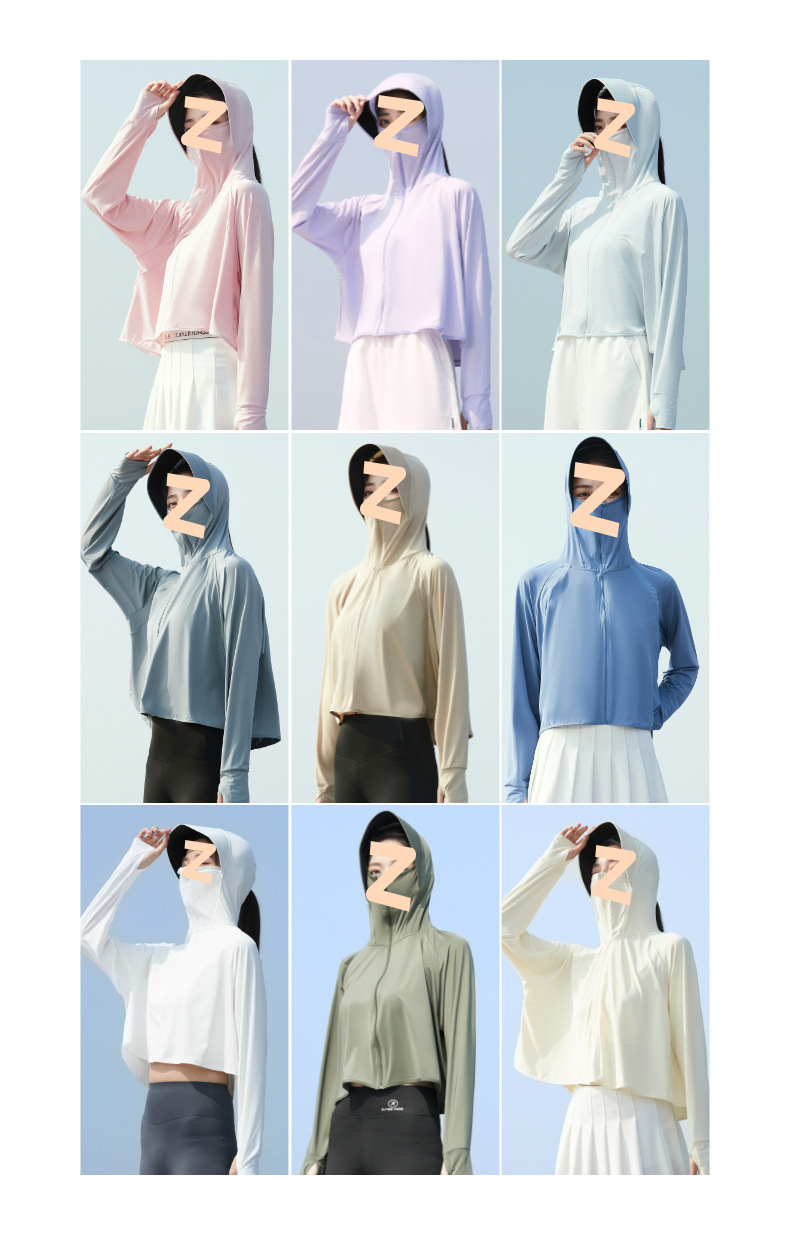2025新款黑胶帽檐防晒衣女士冰丝连帽透气外套防紫外线防晒服跨境