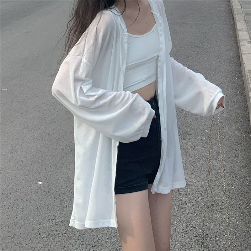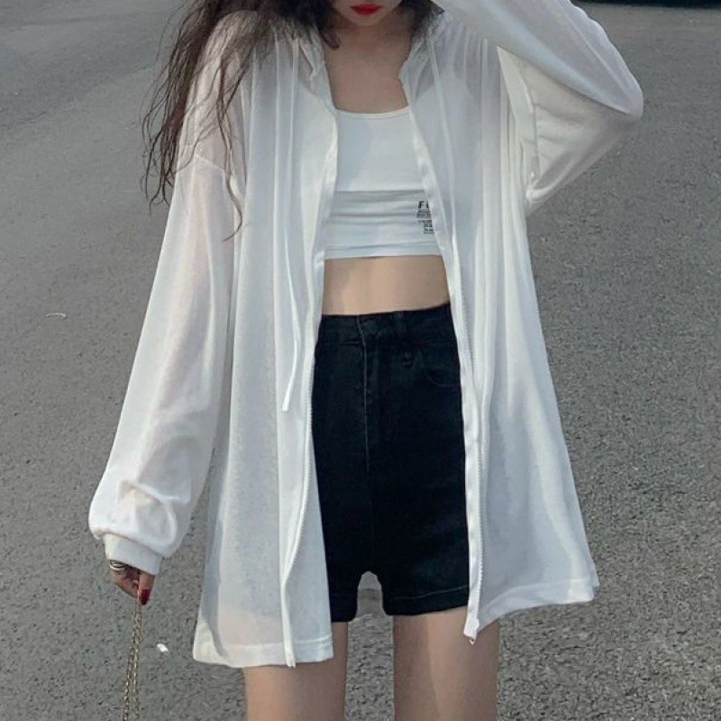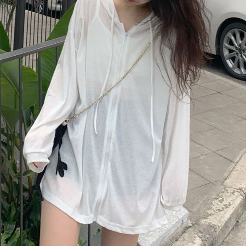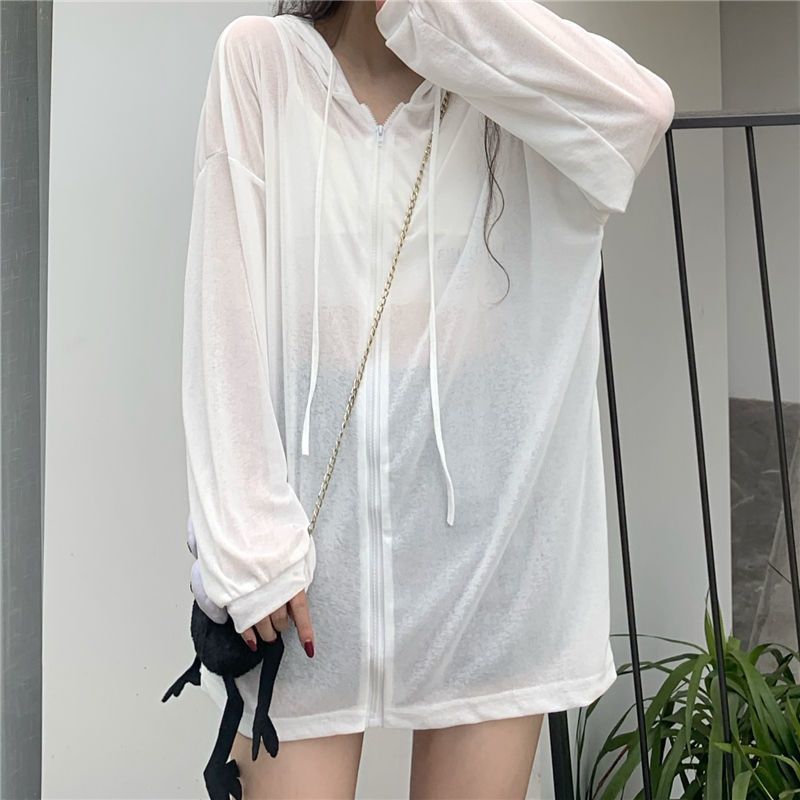 防晒衣女外穿冰丝超薄连帽开衫轻薄外套女夏韩版新款长袖宽松上衣