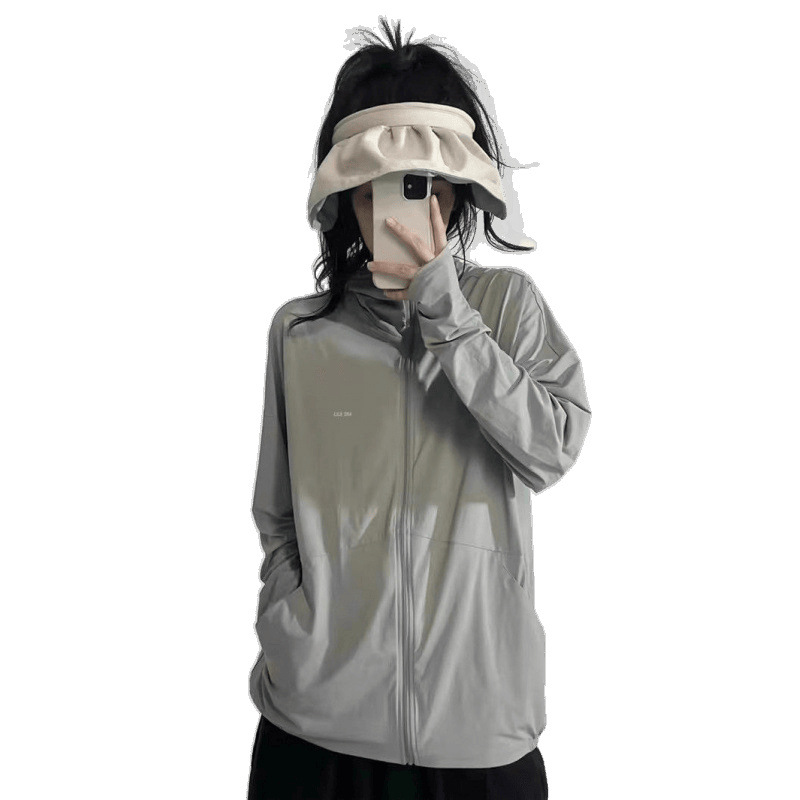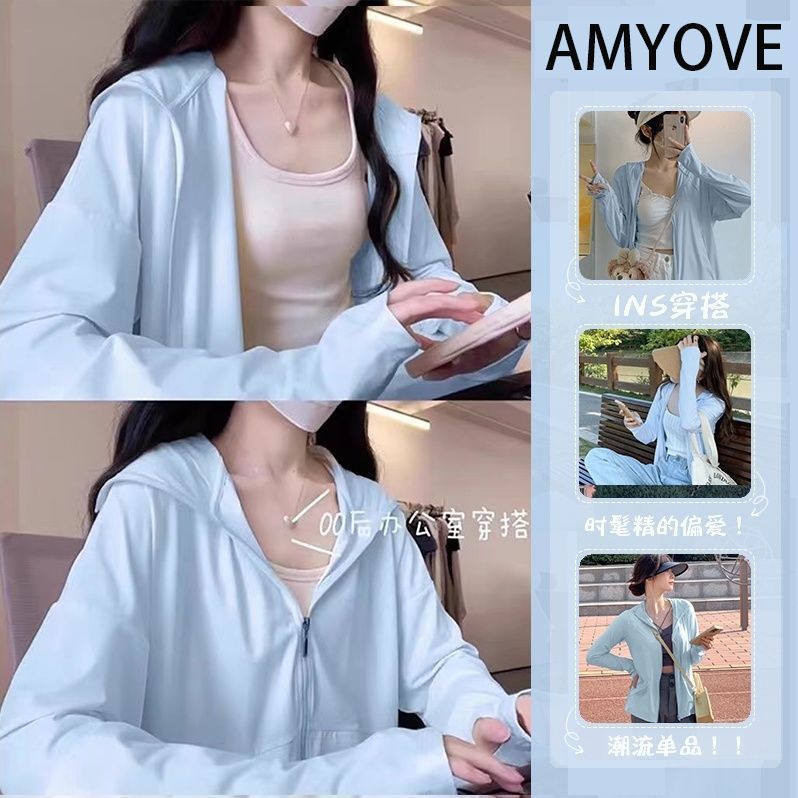 蓝色冰丝连帽防晒衣女显瘦可爱新款紫外线透气宽松薄款潮流