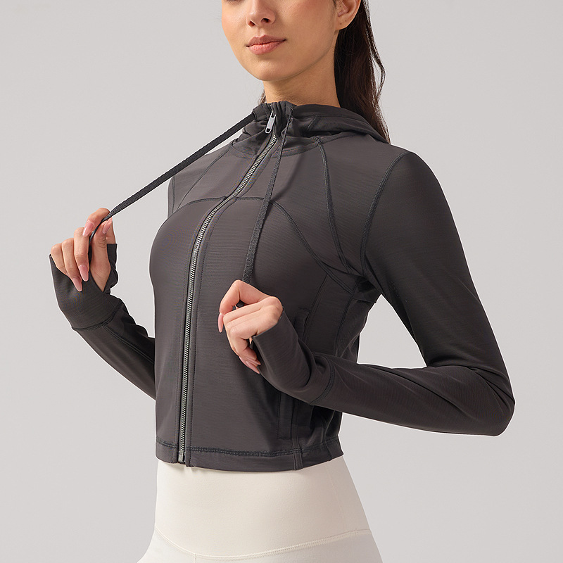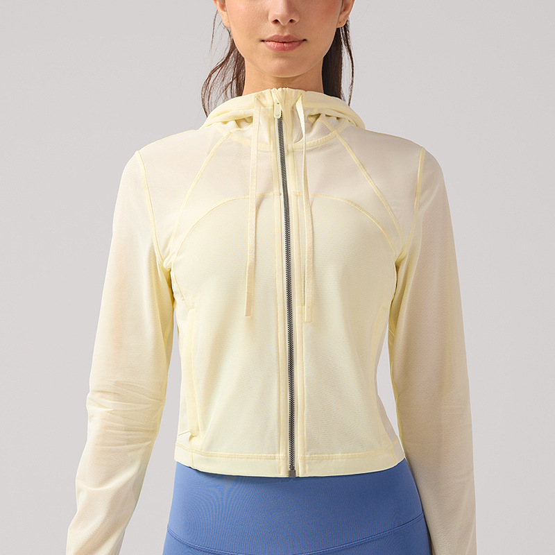 lulu防晒瑜伽服外套女士吸湿透气速干运动上衣网面短款连帽夹克
