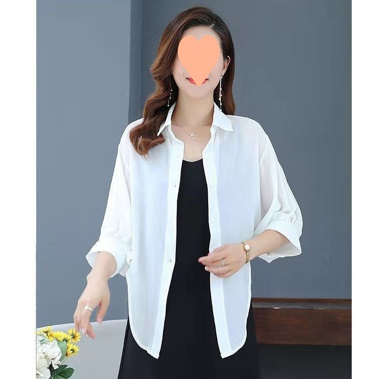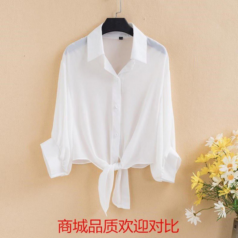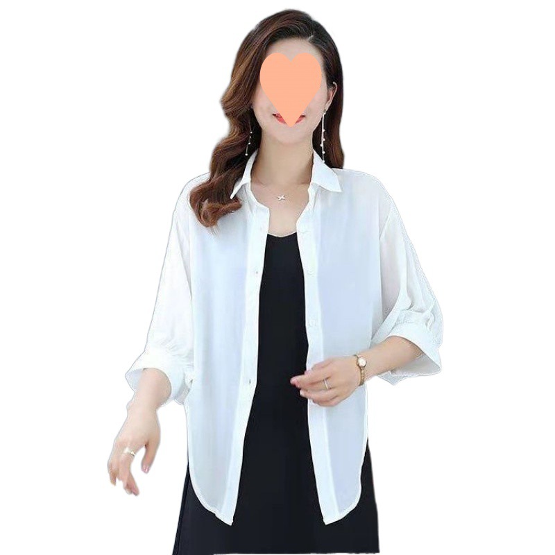 加密雪纺衬衫纯色宽松外搭开衫海边防晒衣夏季空调衫配裙小披肩女