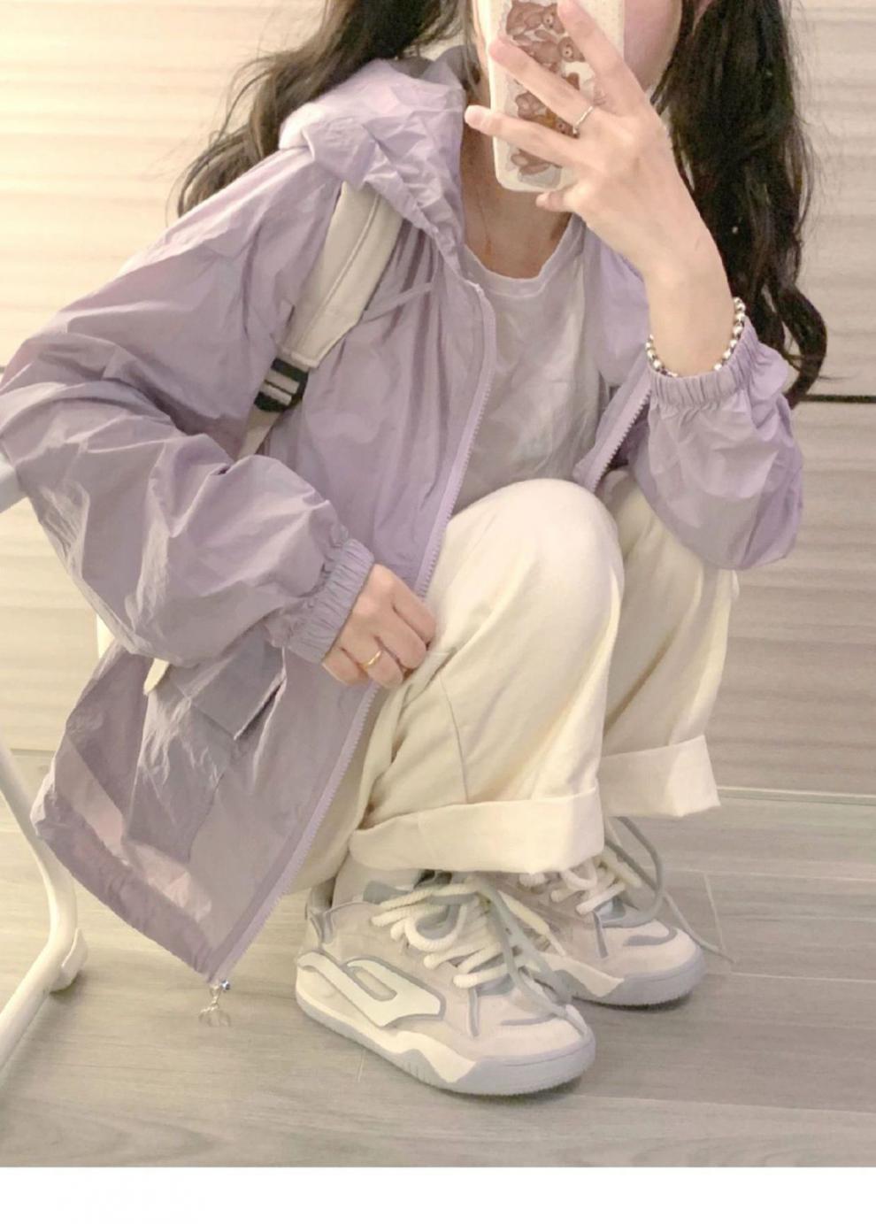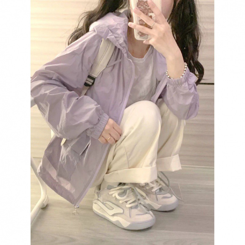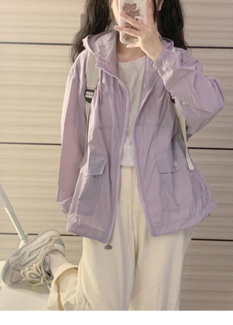 清仓紫色连帽防晒衣外套女薄款夏季新款户外透气工装防晒服