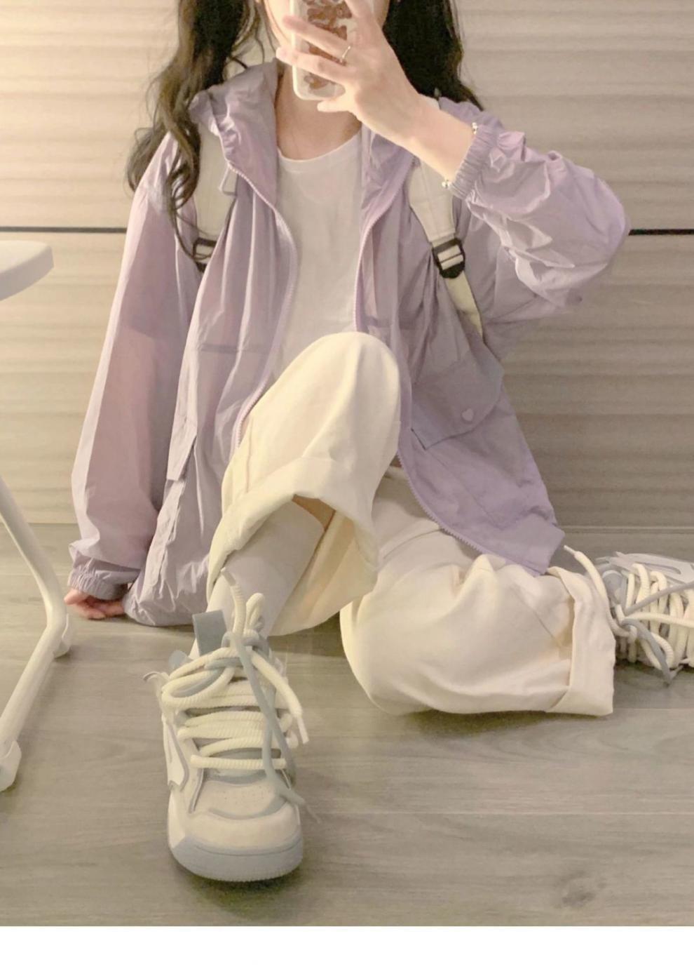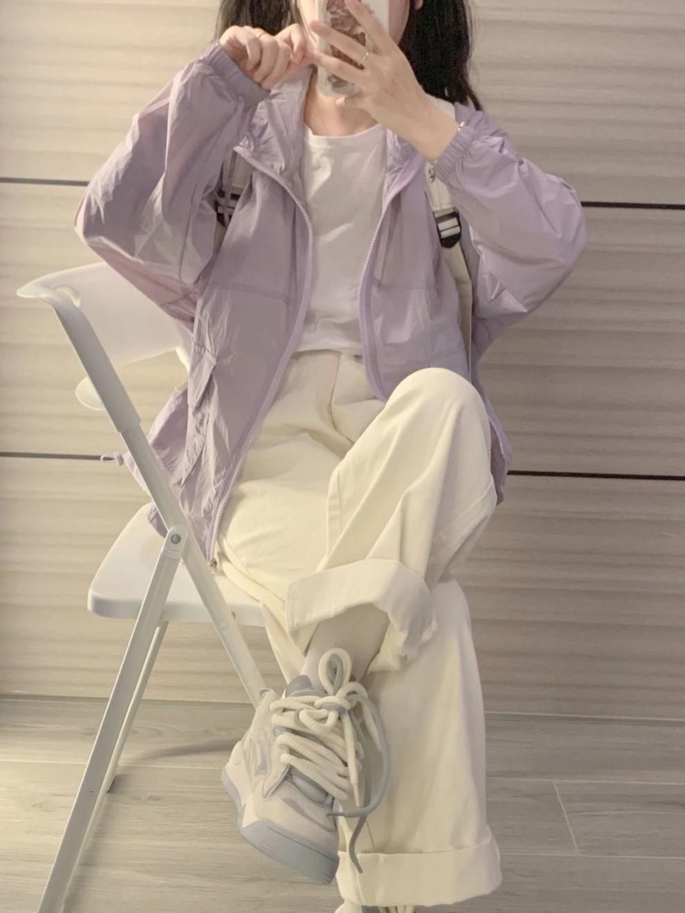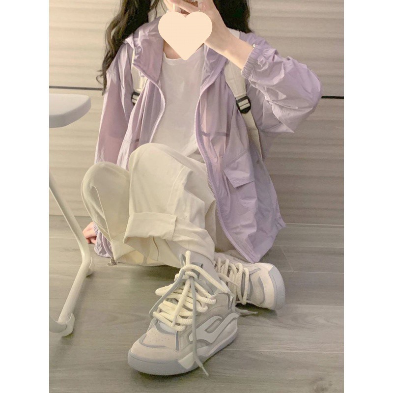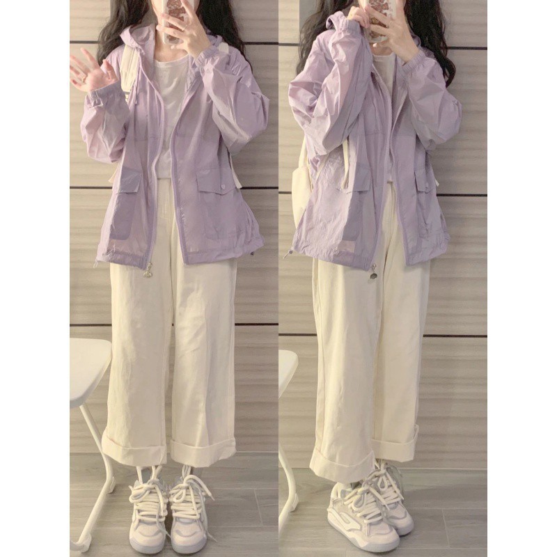 清仓紫色连帽防晒衣外套女薄款夏季新款户外透气工装防晒服