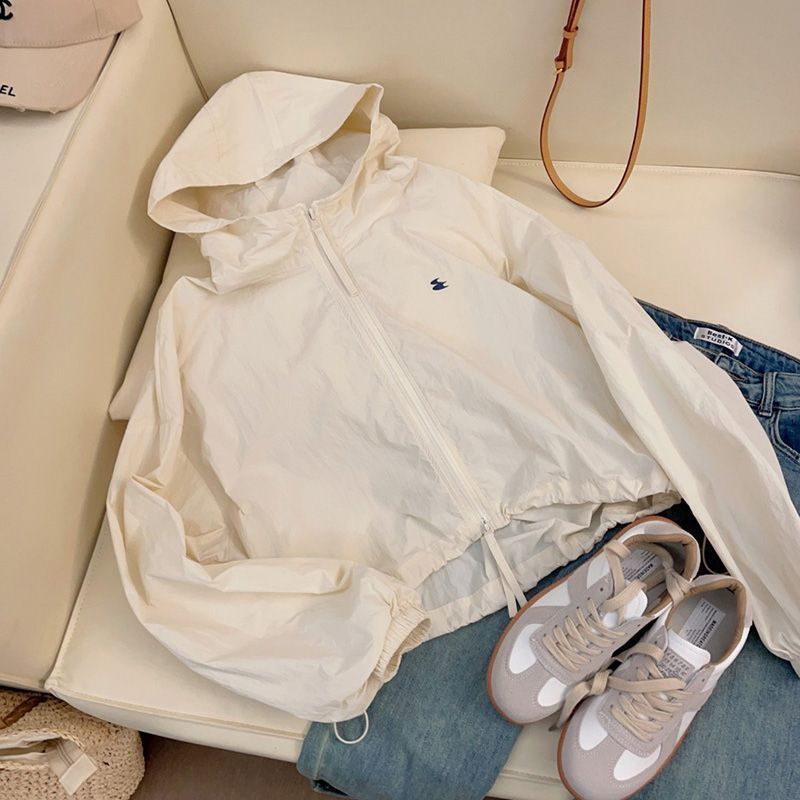 韩系薄款透气防晒衣外套女2025新款春夏季短款抽绳休闲夹克上衣潮