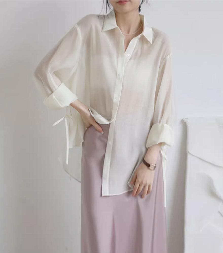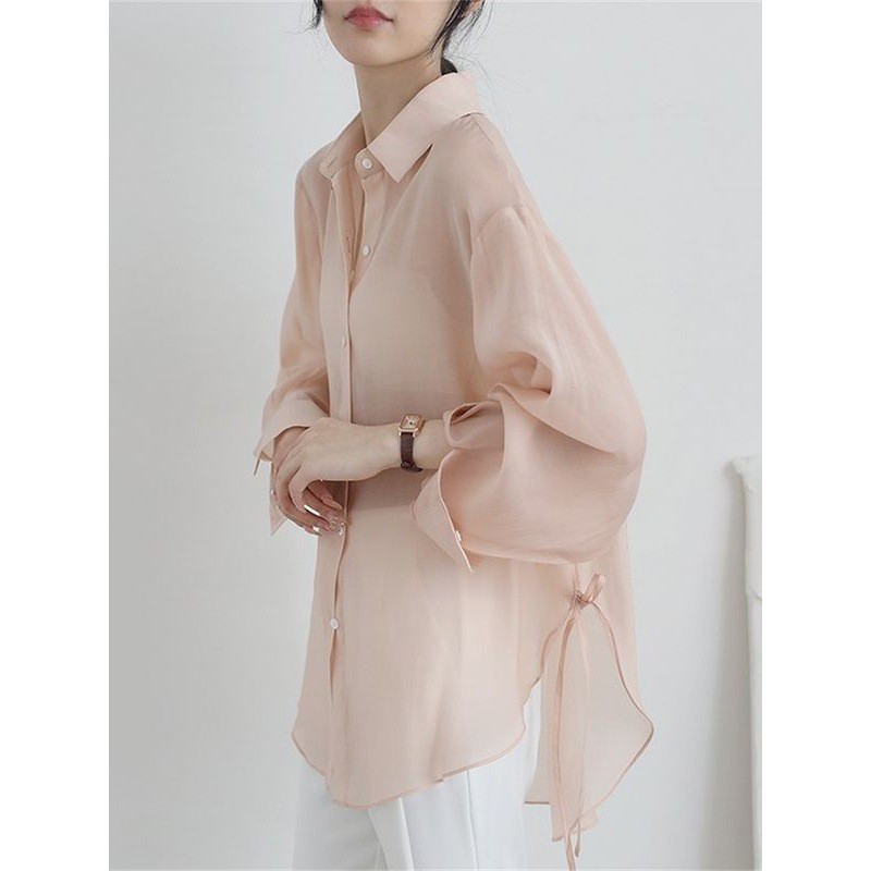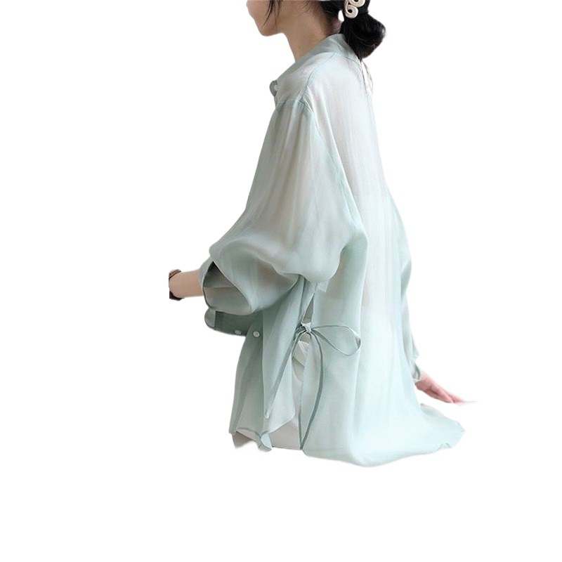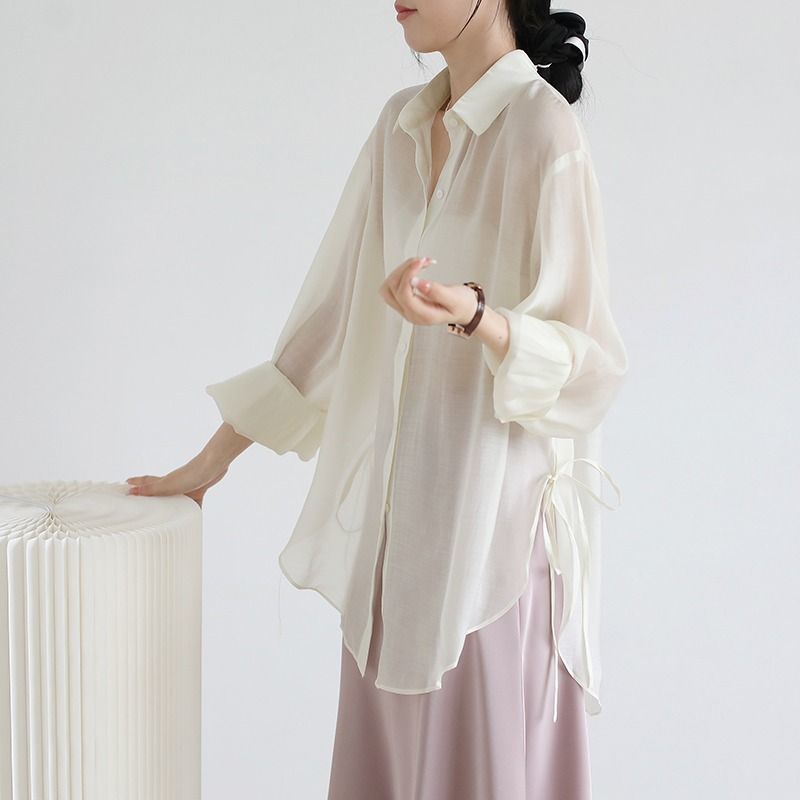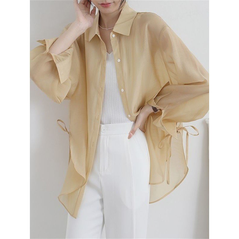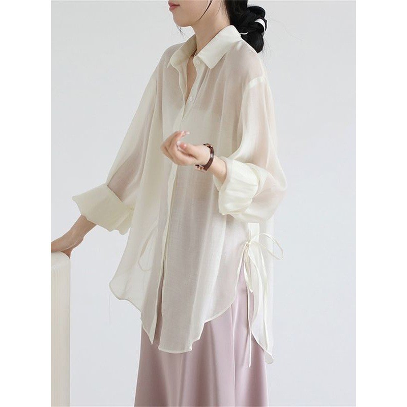 冰丝雪纺衬衫女夏季年新款薄款外搭绑带开衫防晒衣服外套上衣
