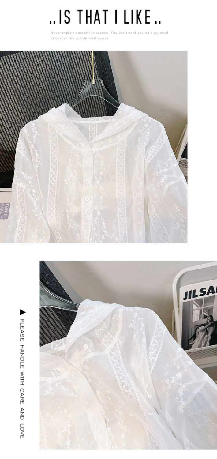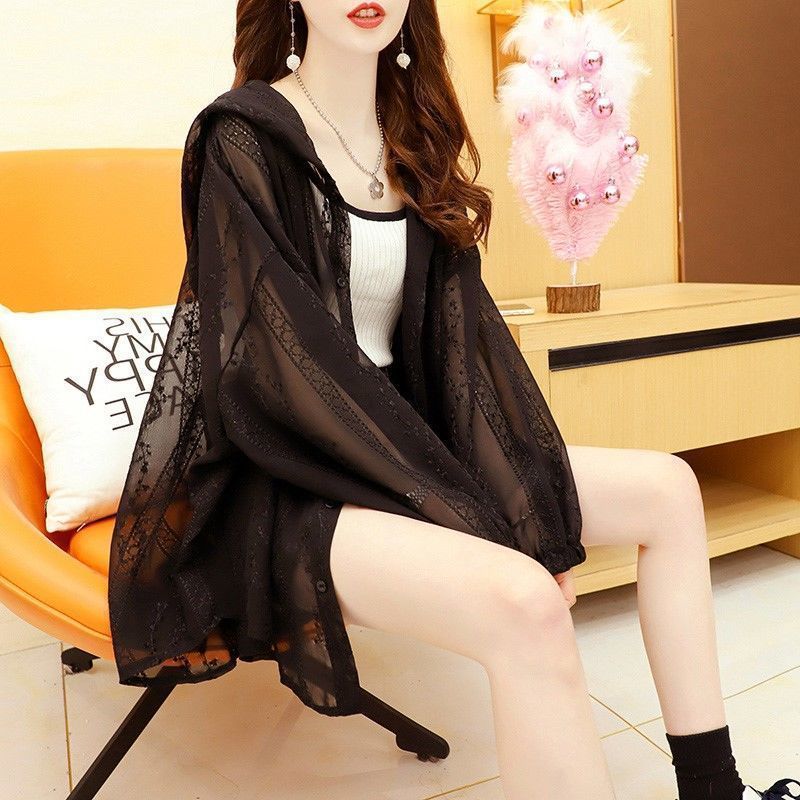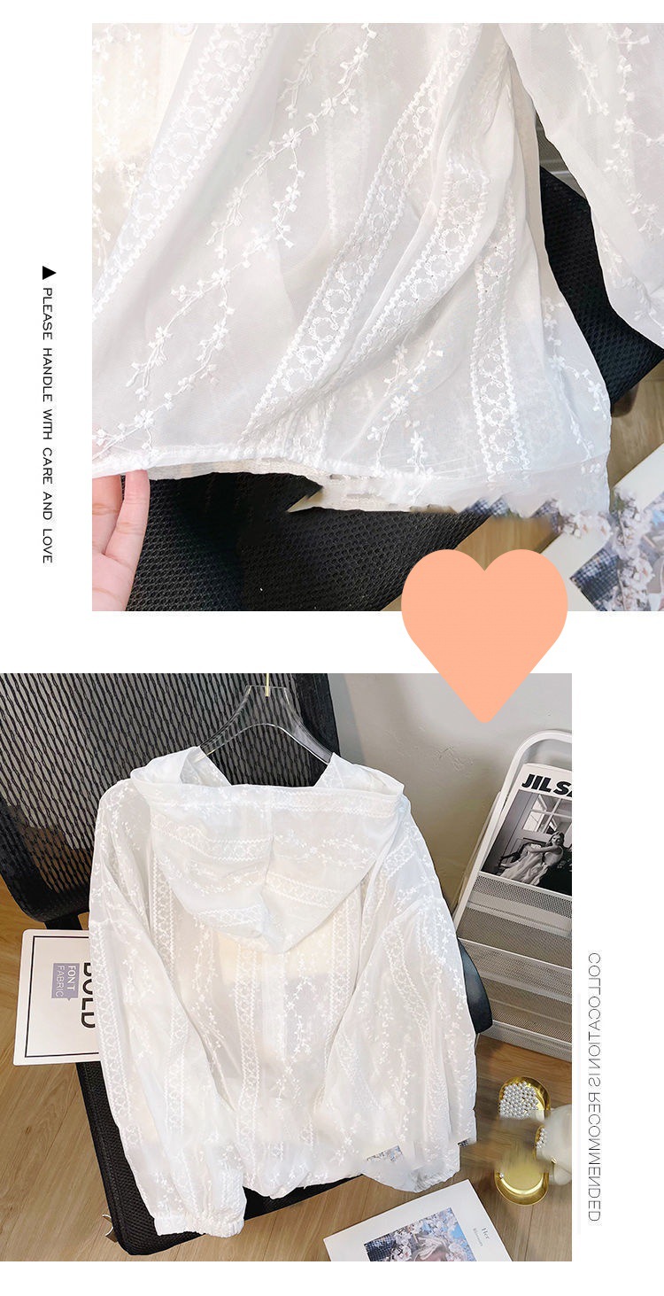 蕾丝连帽防晒外套衣服女士新款夏季薄款防紫外线休闲防晒开衫