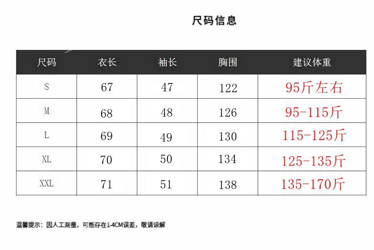 | 2xl (67.50 kg-85.00 kg(2XL (135-170斤)) | USD $16.55 | 1550 piece available |