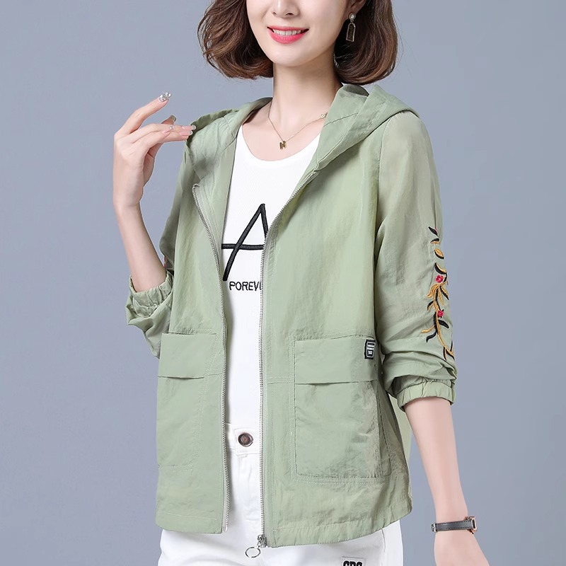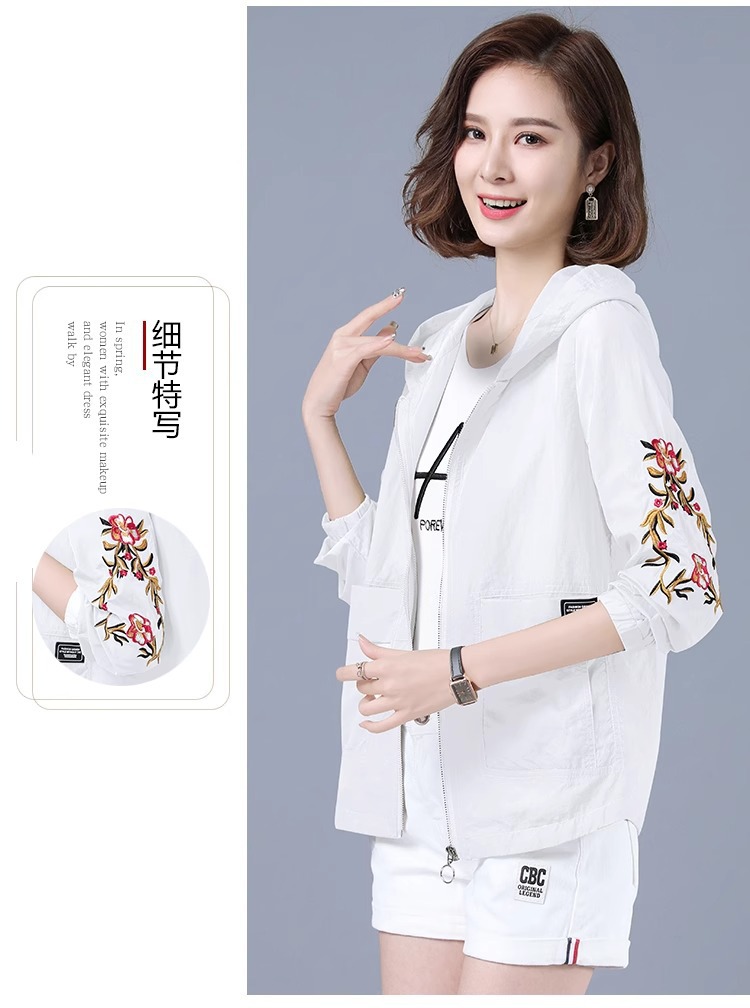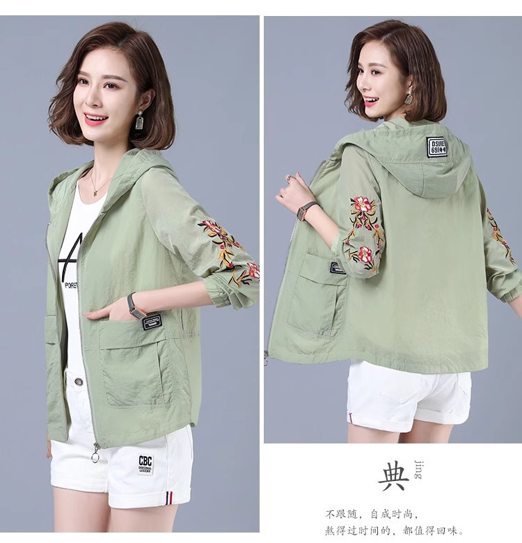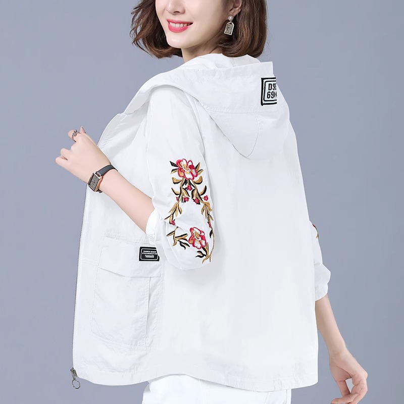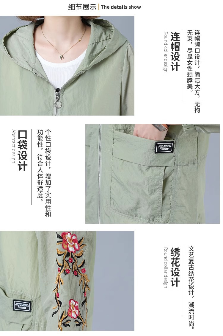 2025年新款防晒衣女刺绣夏季防晒服透气宽松中年妈妈装大码短外套