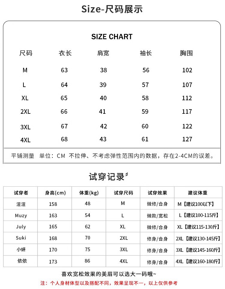| 4xl [recommended 72.50 kg-80.00 kg]](4XL【建议145-160斤】) | USD $0.0 | 916 piece available |