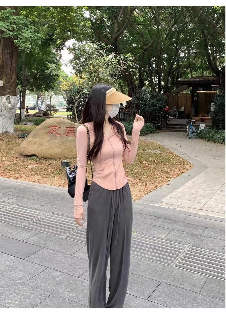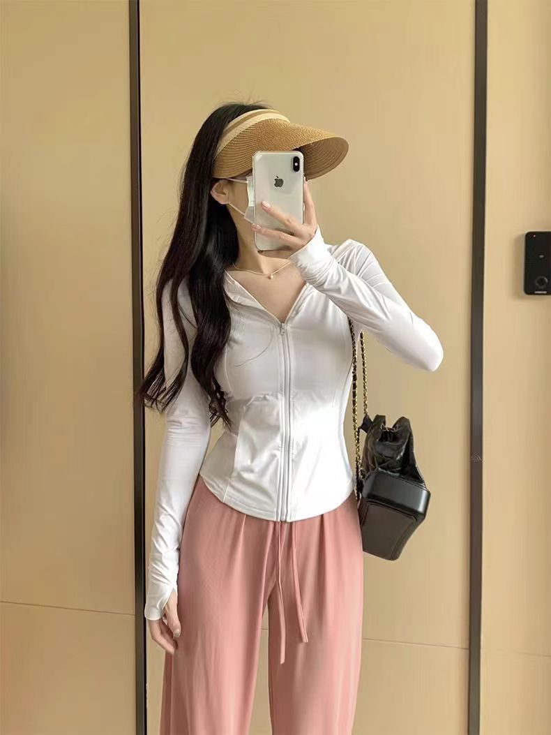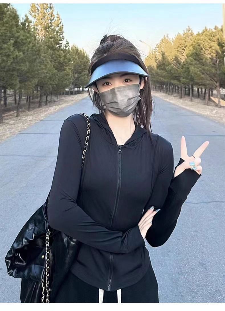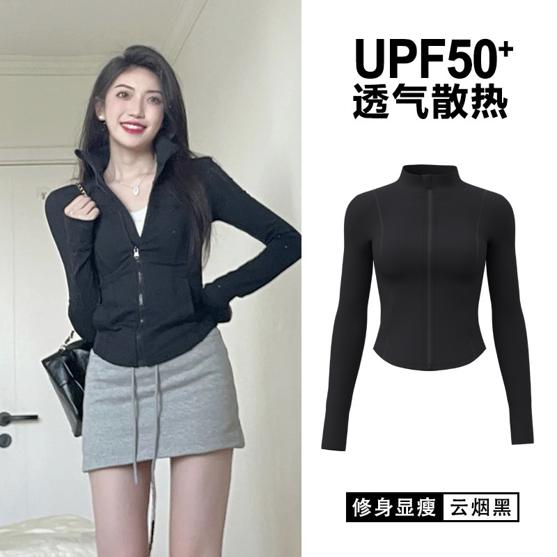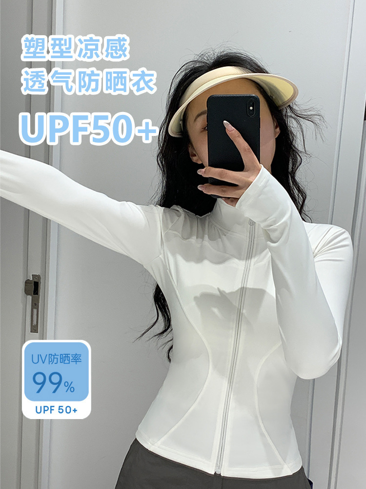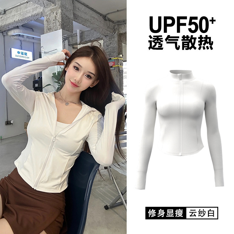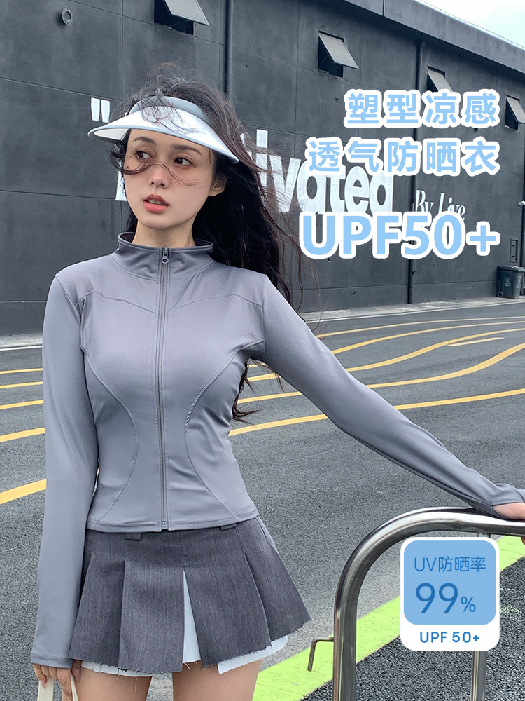 紧身防晒衣女夏季原纱修身冰丝凉感防紫外线修身开衫立领防晒服女
