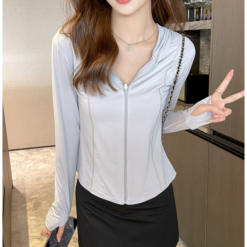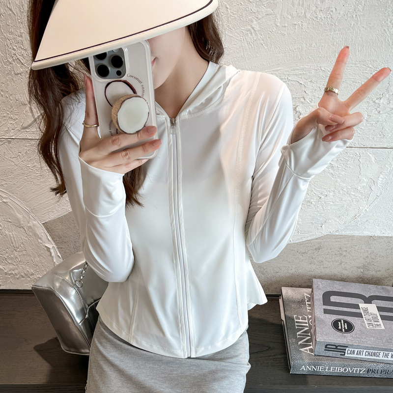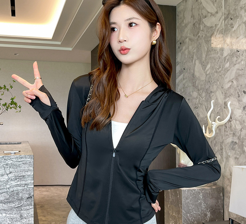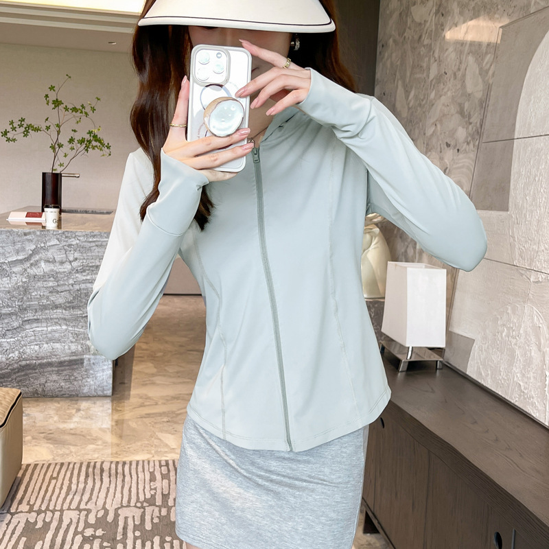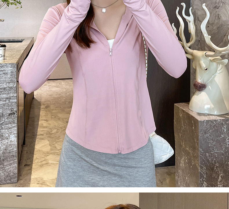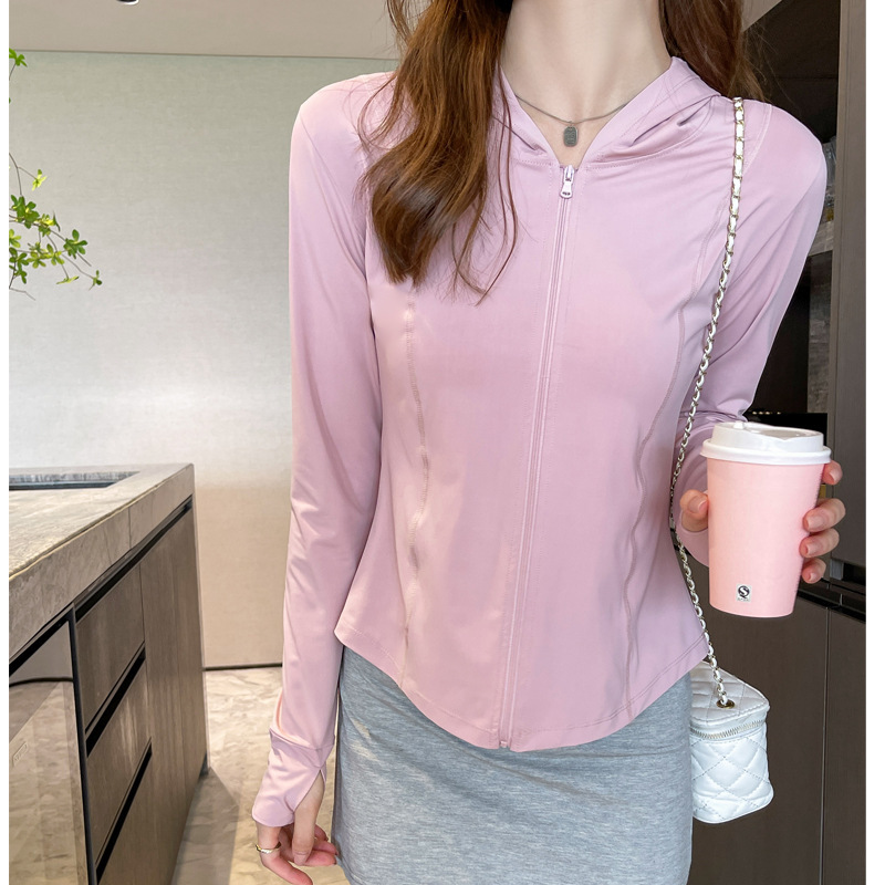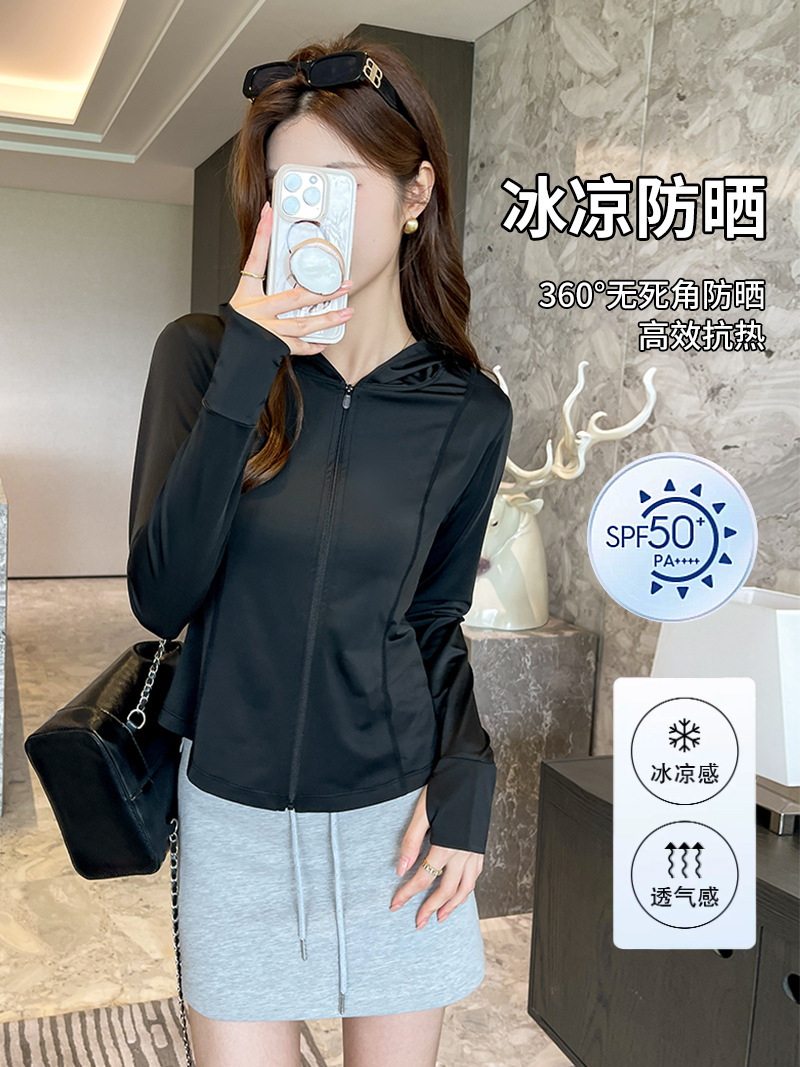 修身防晒衣女衫夏季防紫外线薄款原纱冰丝户外瑜伽运动外套防晒服