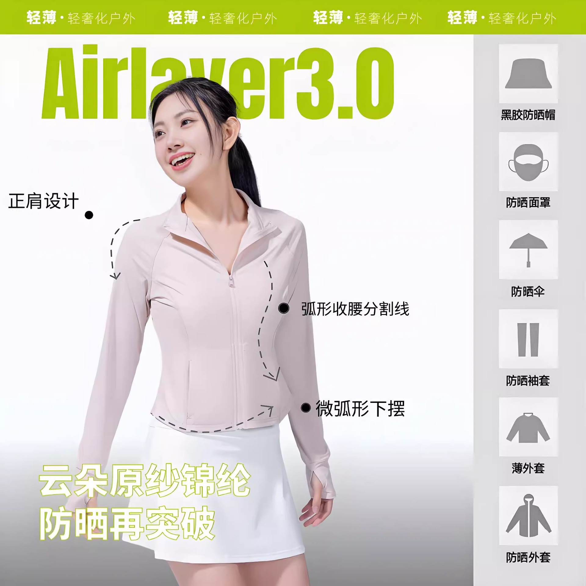 lulu同款原纱凉感修身防晒衣女款外套防紫外线夏冰蛮腰透气防晒服