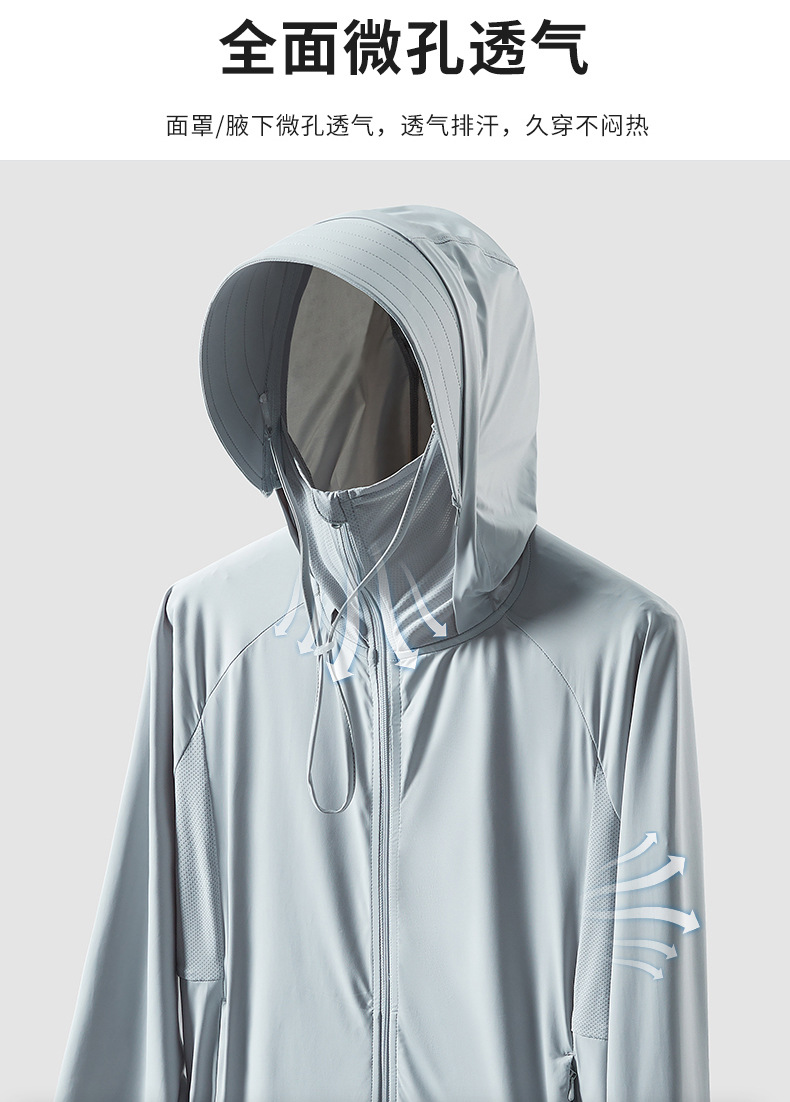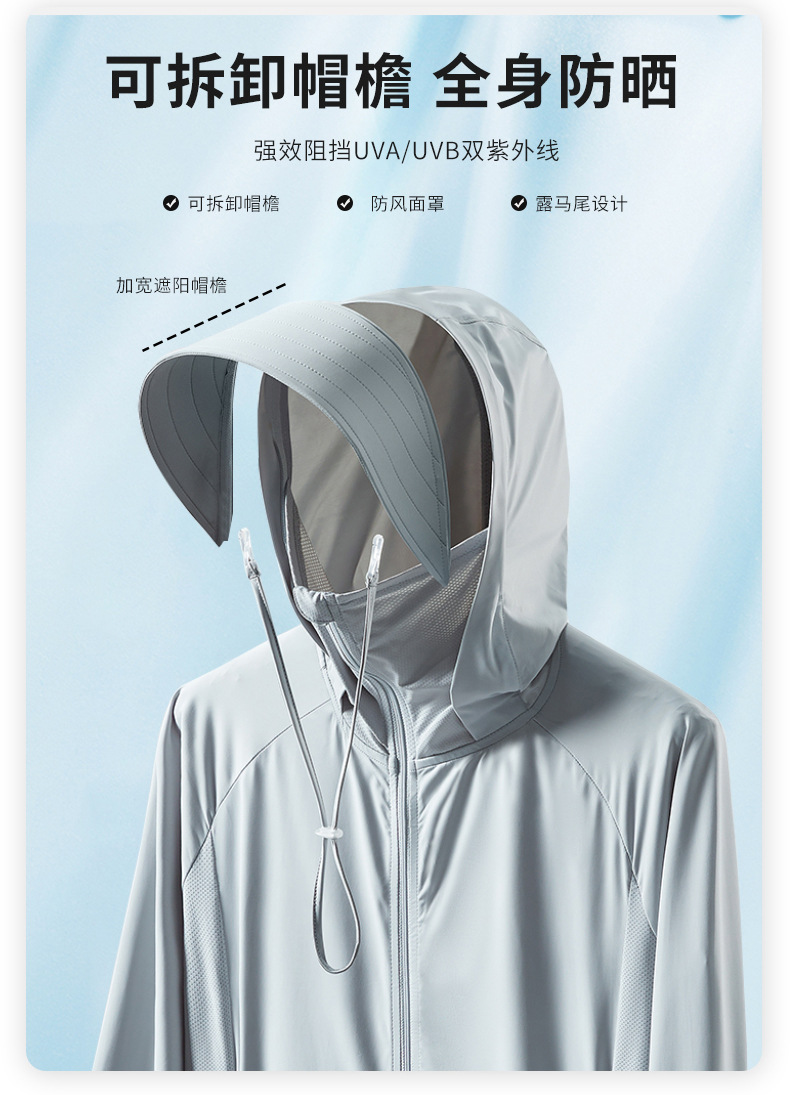 2357原纱防晒衣女夏季防紫外线大帽檐透气冰凉防晒服男皮肤衣