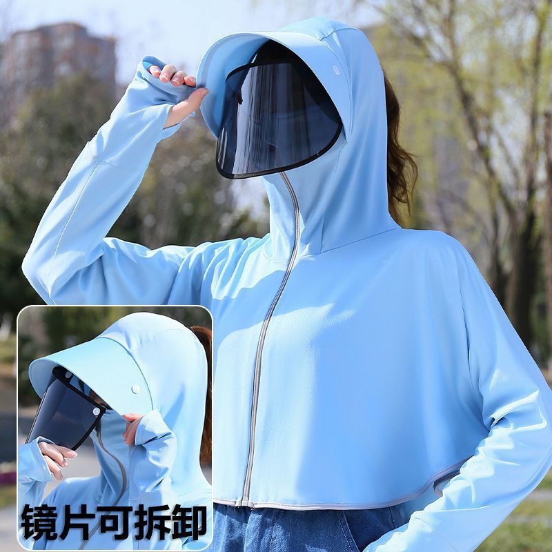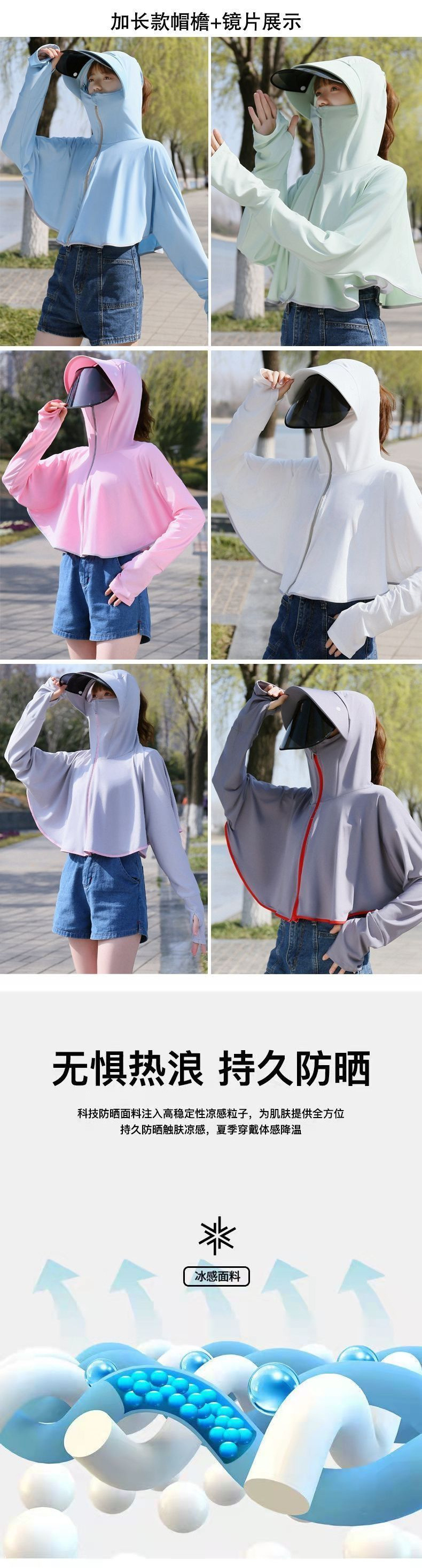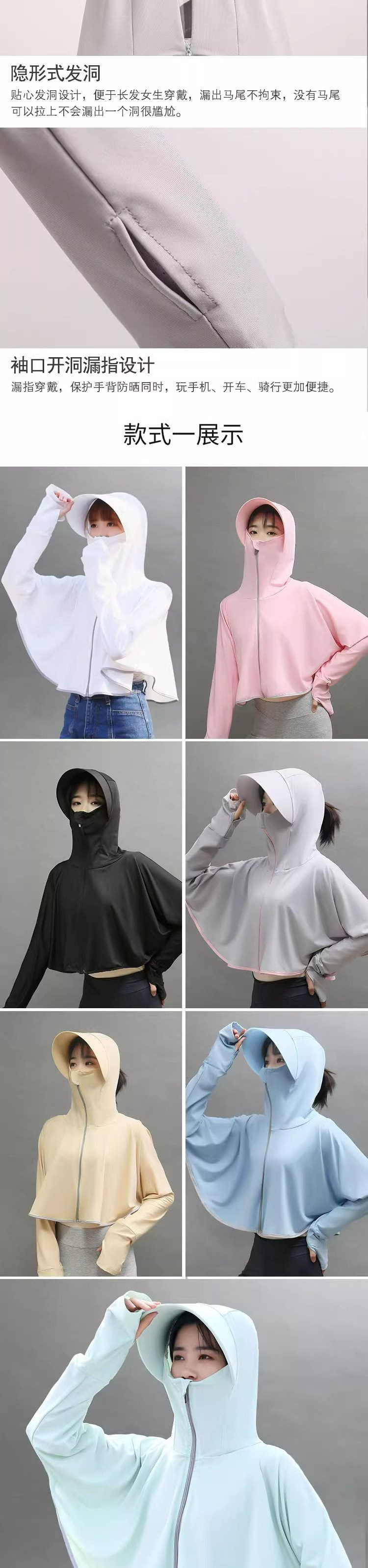 短款女士夏季防晒衣长袖百搭带帽连帽冰丝薄款遮阳防晒服骑行外套