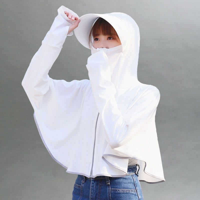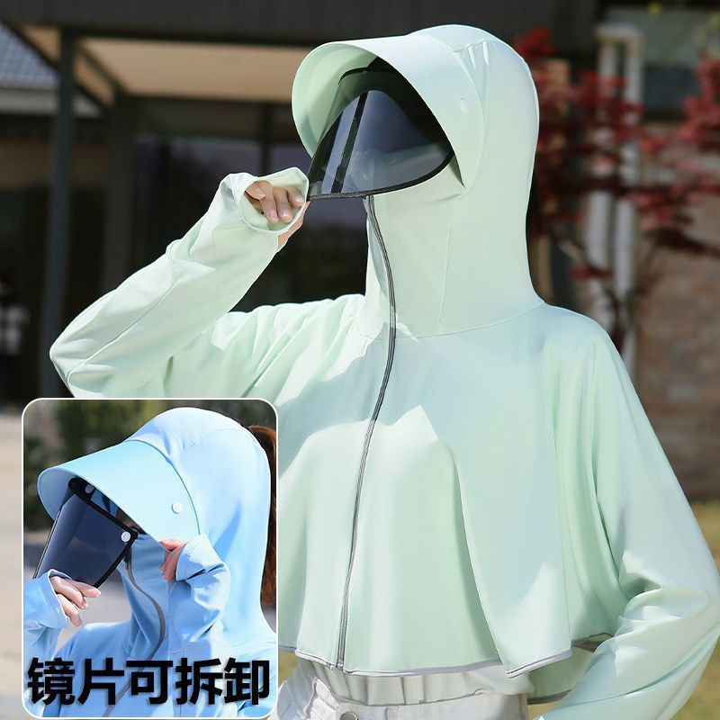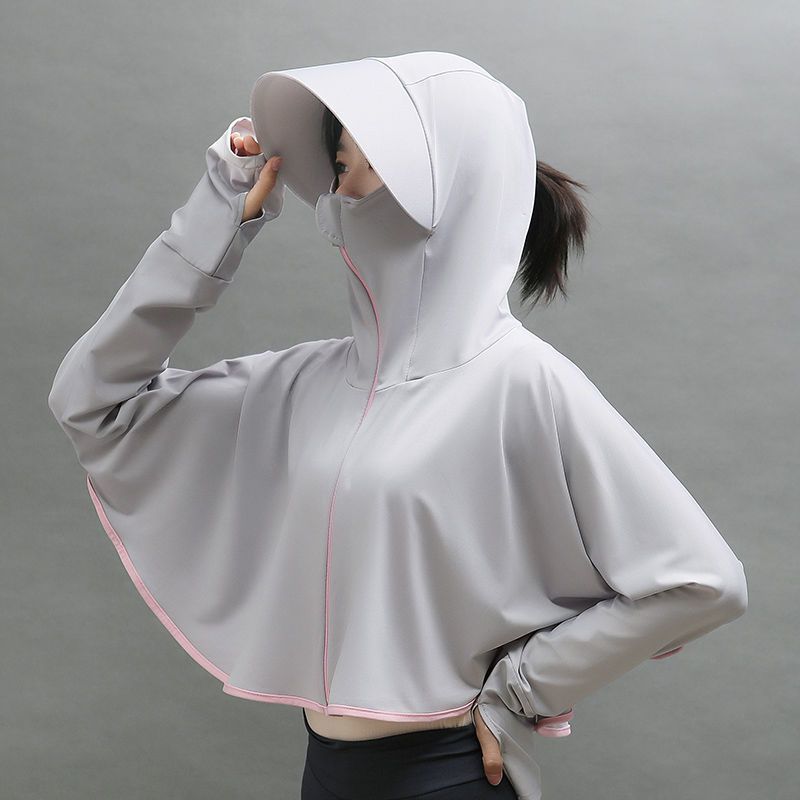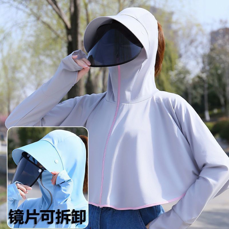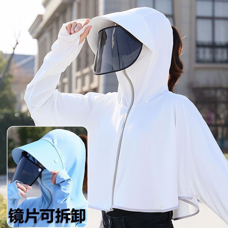 短款女士夏季防晒衣长袖百搭带帽连帽冰丝薄款遮阳防晒服骑行外套