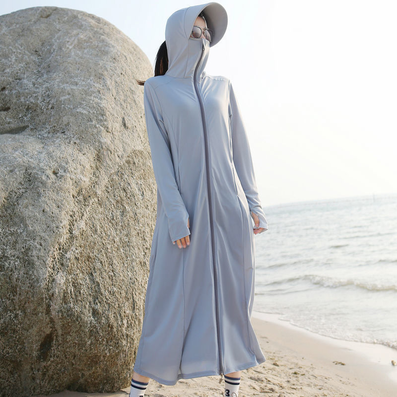 防晒衣女轻薄透气户外防晒服外套夏季超长款全身收腰显瘦防晒裙新