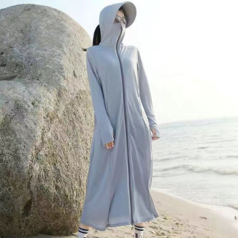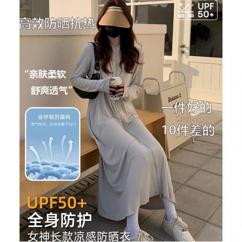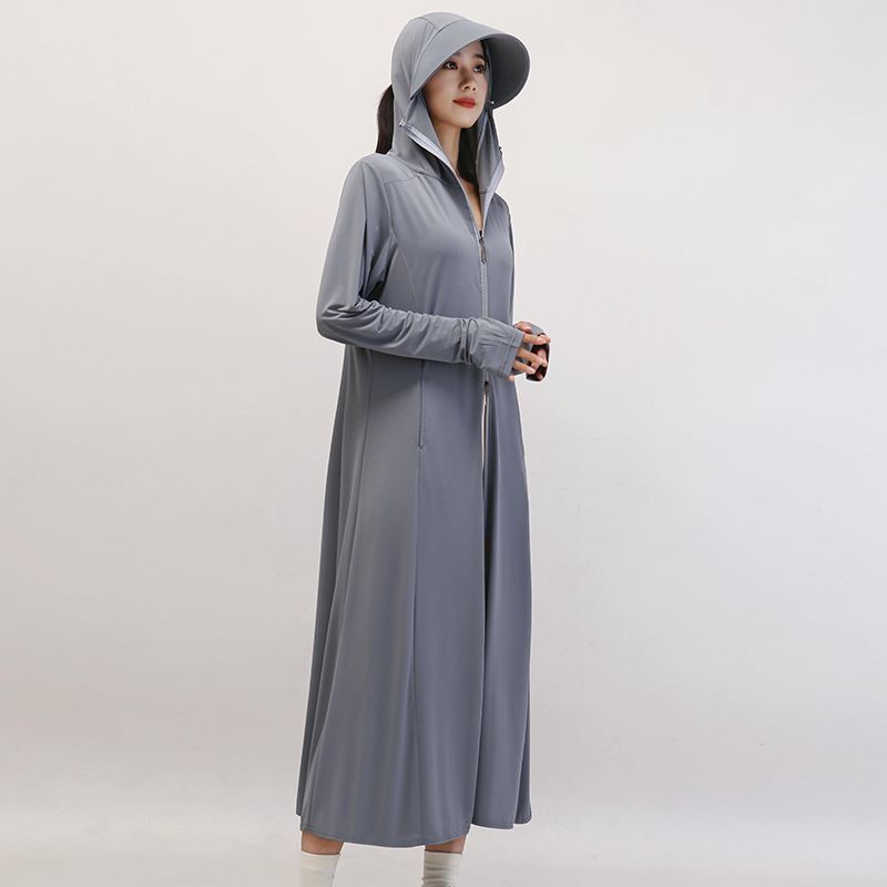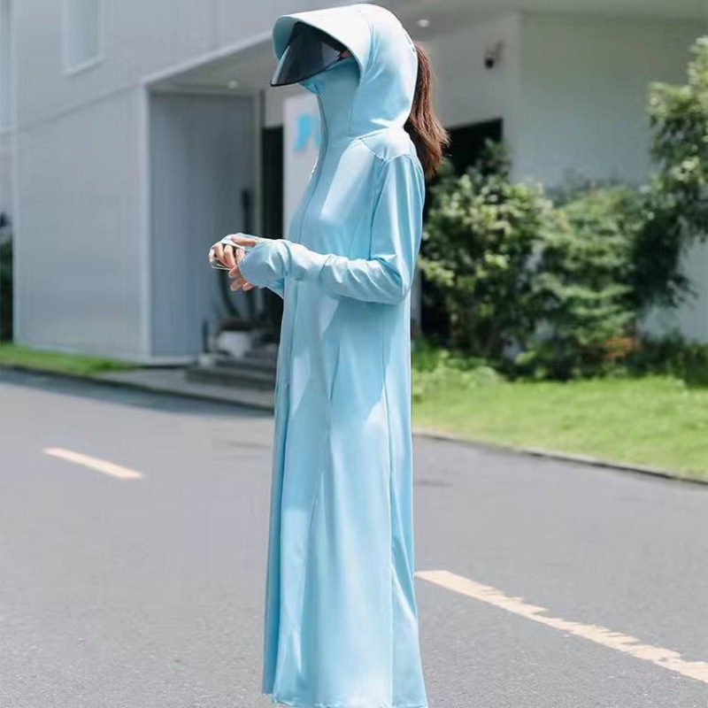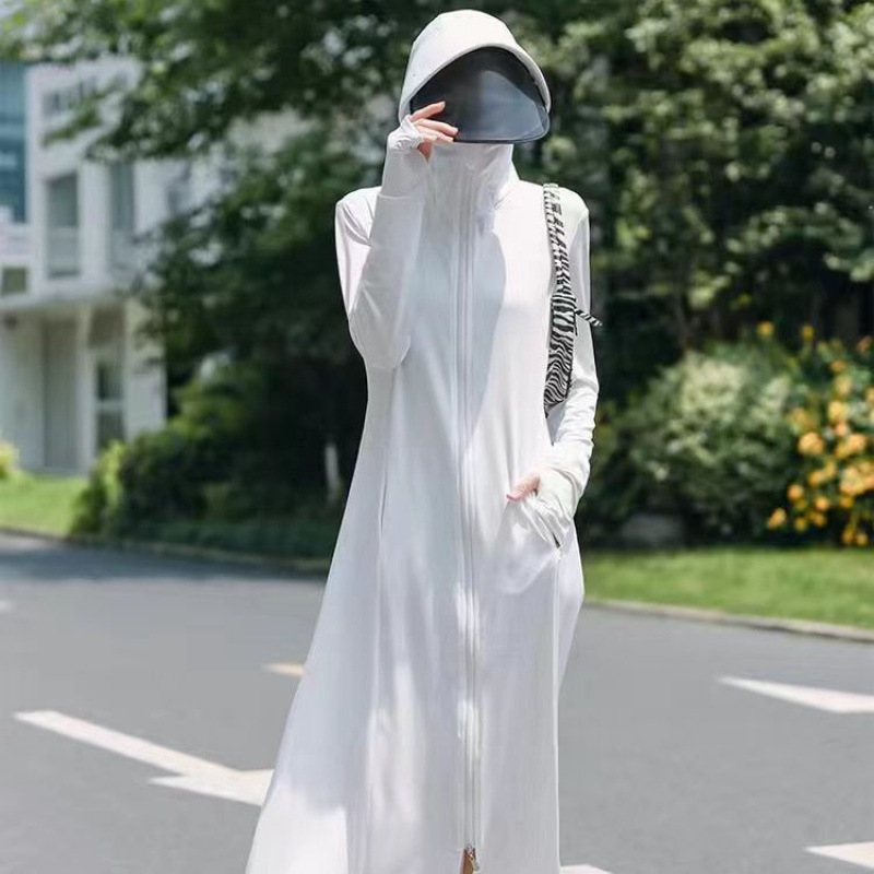 防晒衣女2025夏季新款连帽长过膝紫外线冰丝透气防晒薄外套防尘新