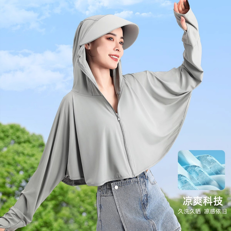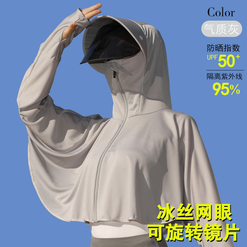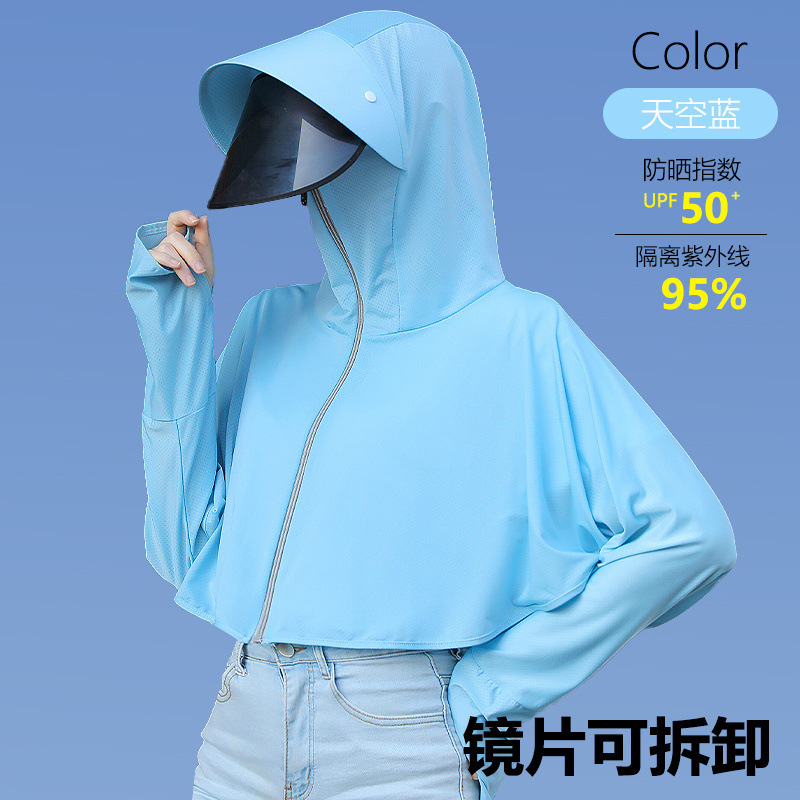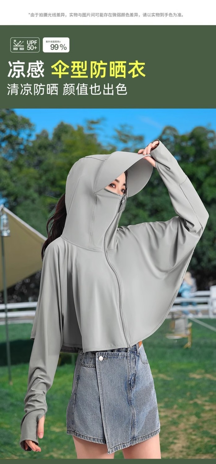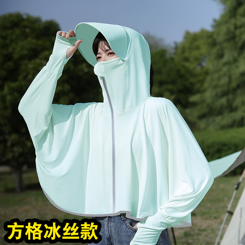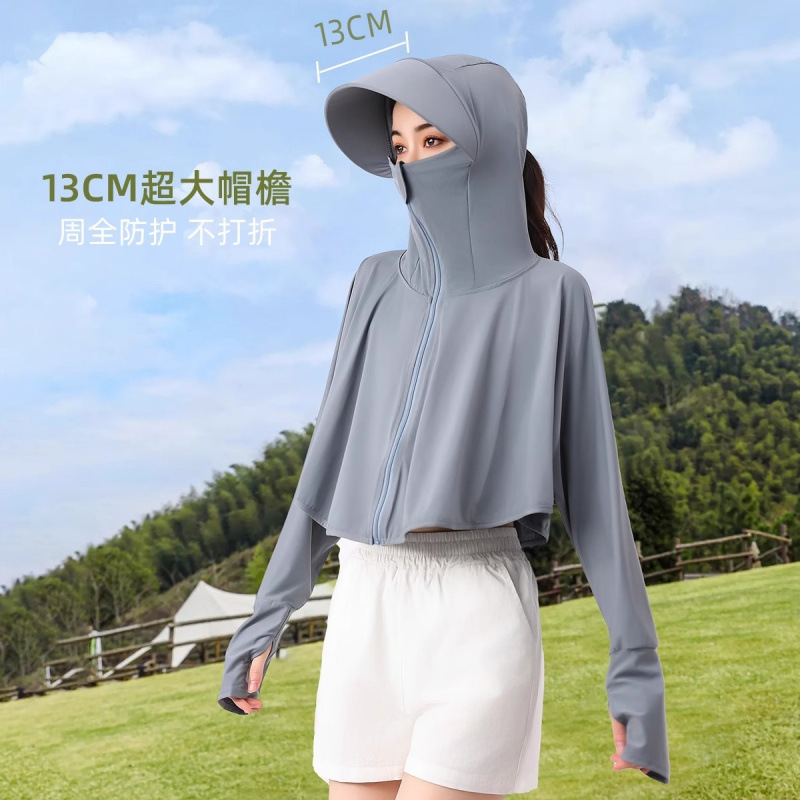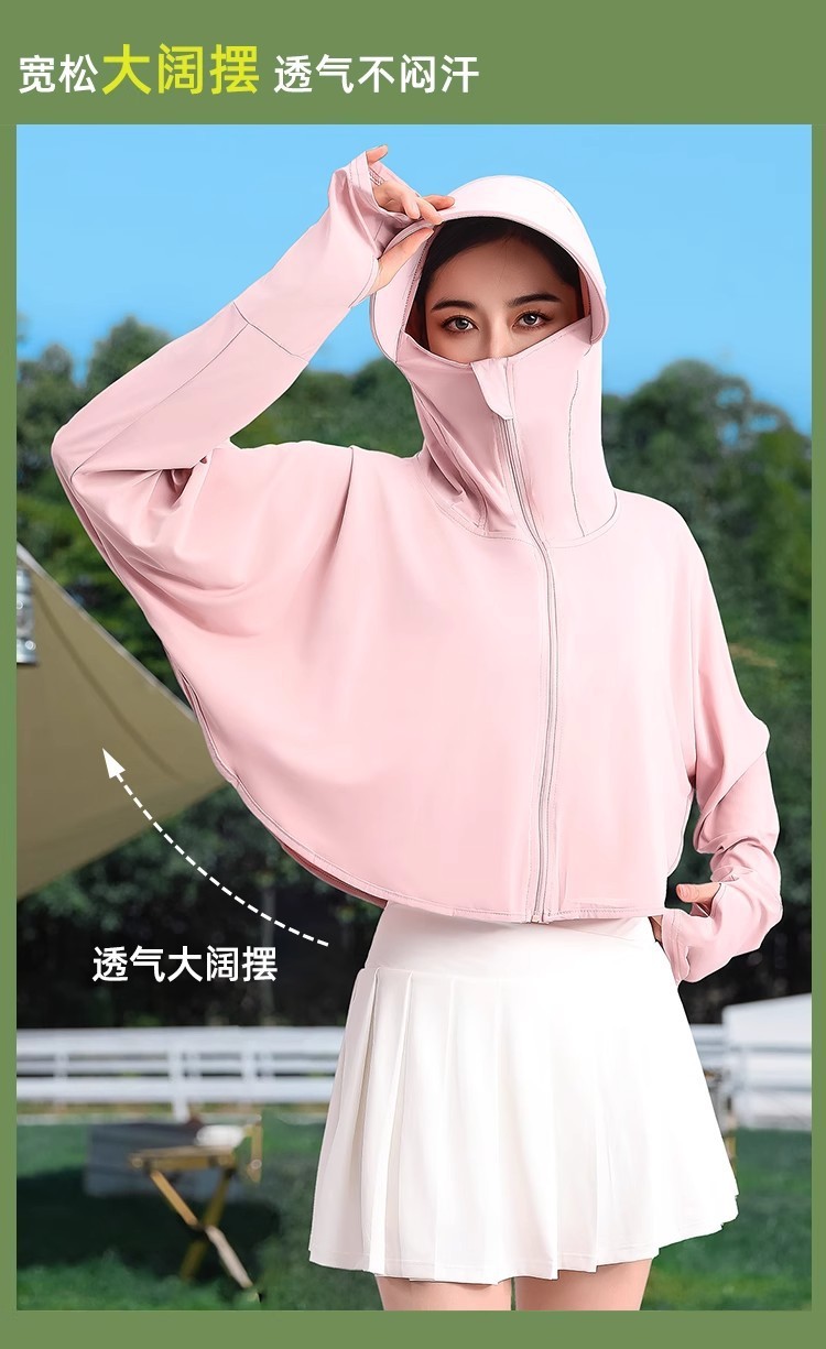 夏冰丝防晒衣女遮脸骑车防紫外线upf50透气薄宽松面罩一体短外套