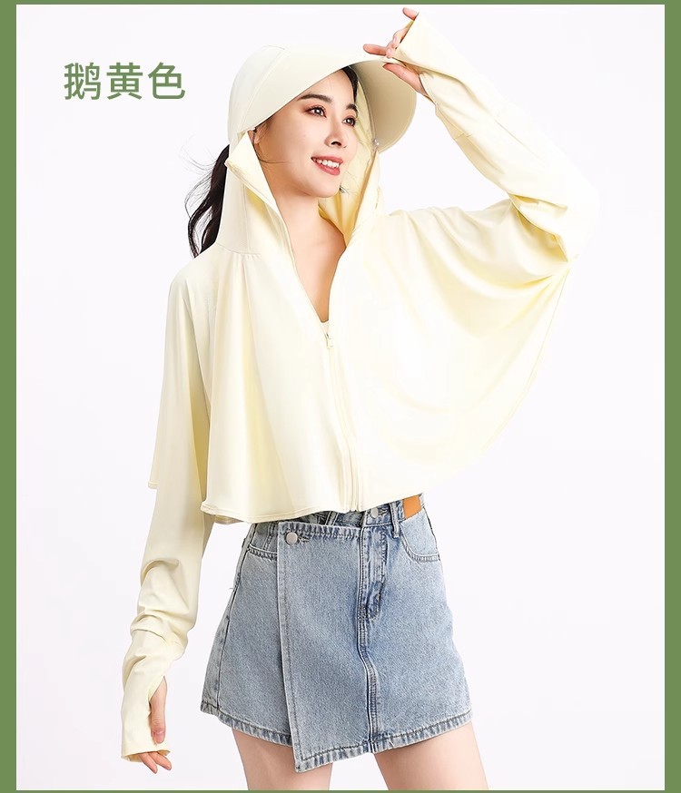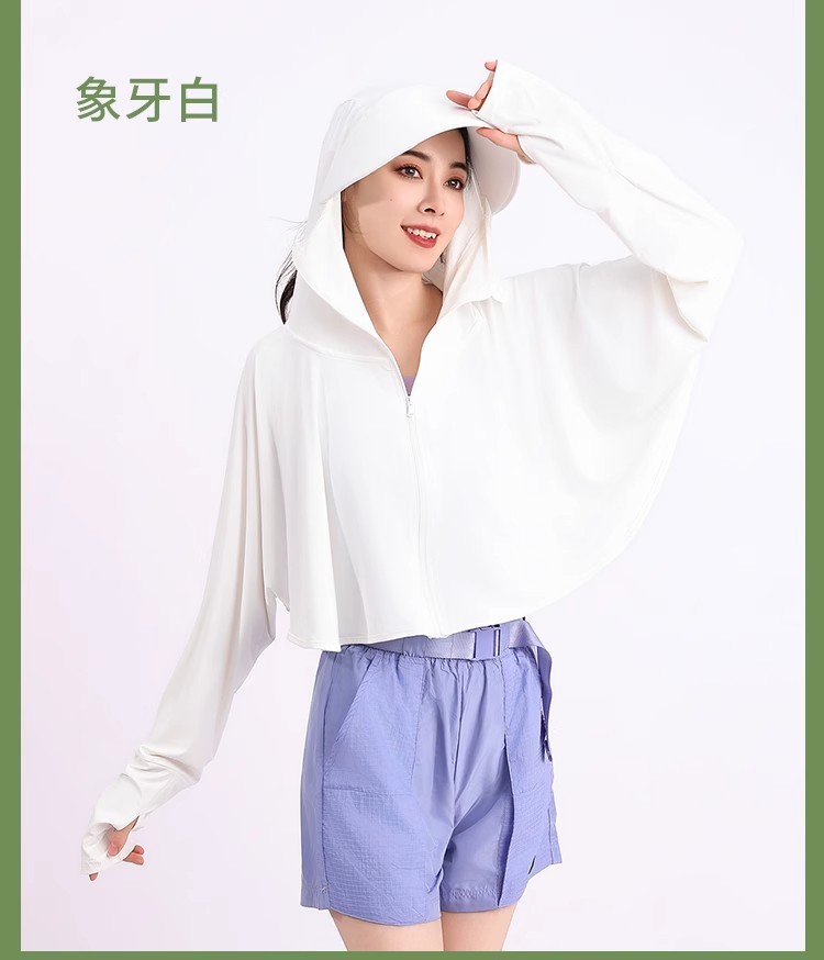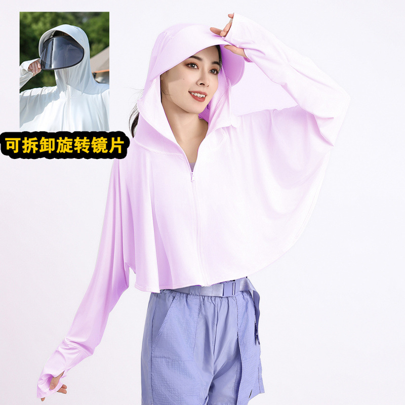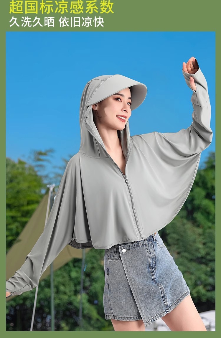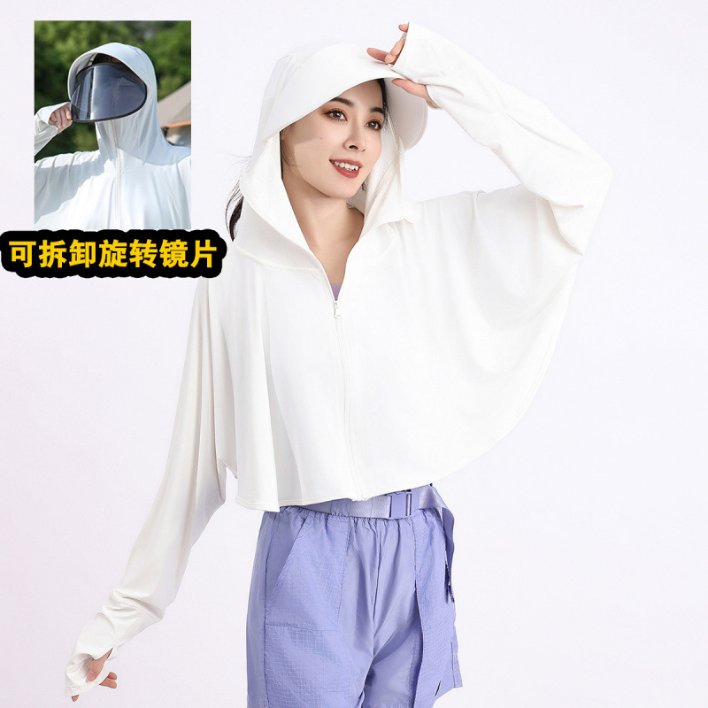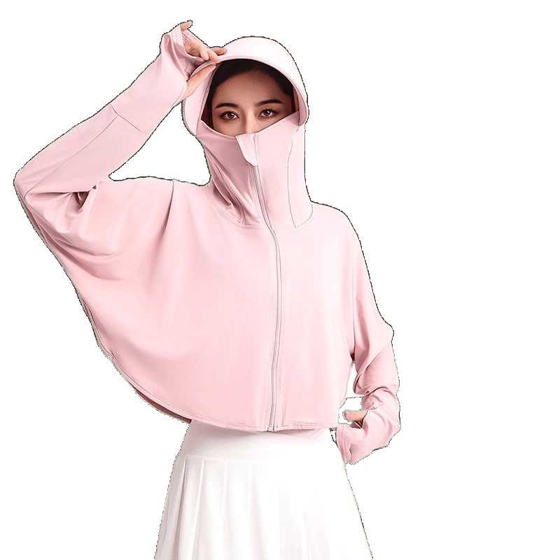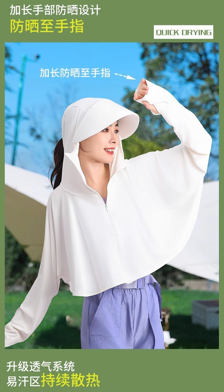 夏冰丝防晒衣女遮脸骑车防紫外线upf50透气薄宽松面罩一体短外套