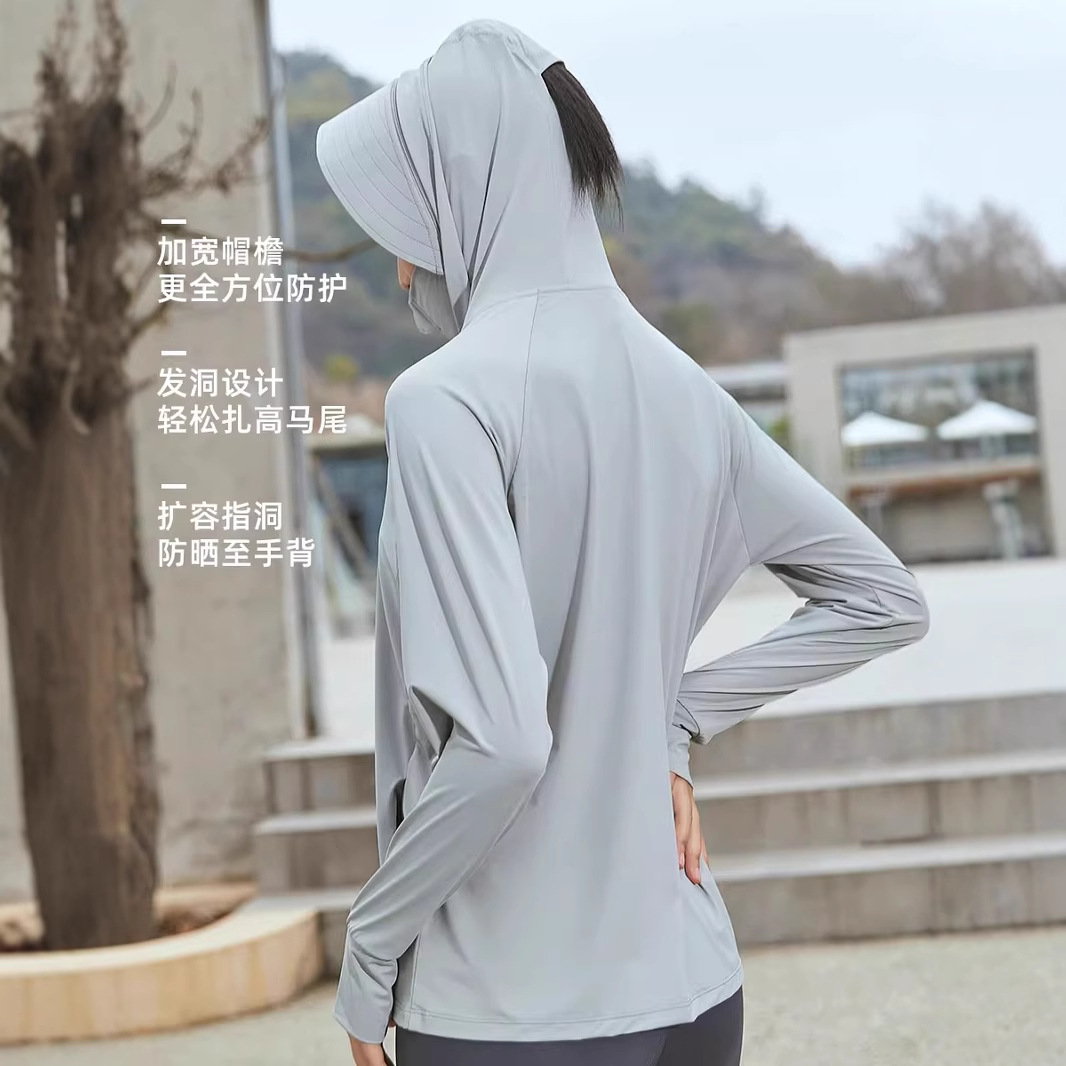 UPF50连帽防晒衣轻薄冰丝防紫外线户外防晒服帽檐可拆骑行防晒衣