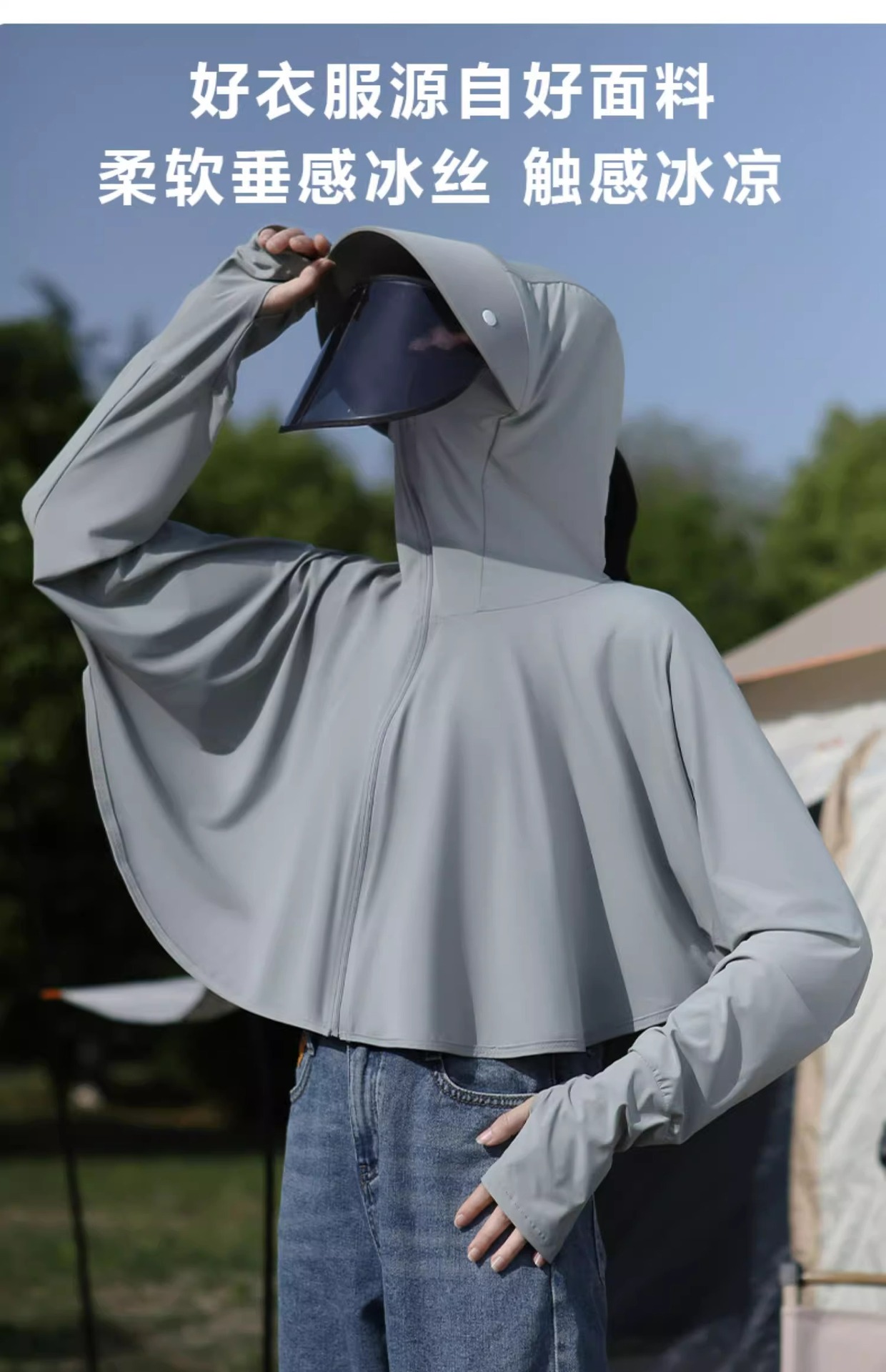 防晒衣女2025夏季新款连帽檐冰丝罩衫骑车户外轻薄款防晒服外套