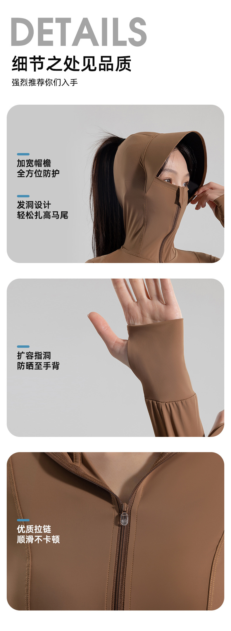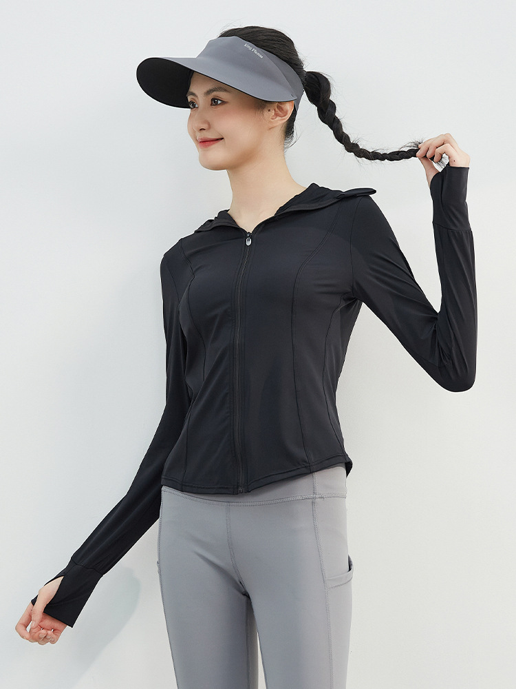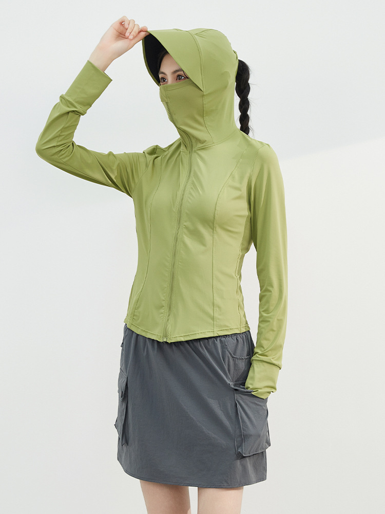 修身立领防晒衣女原纱防晒服女修身连帽透气防紫外线UPF50+防晒衫