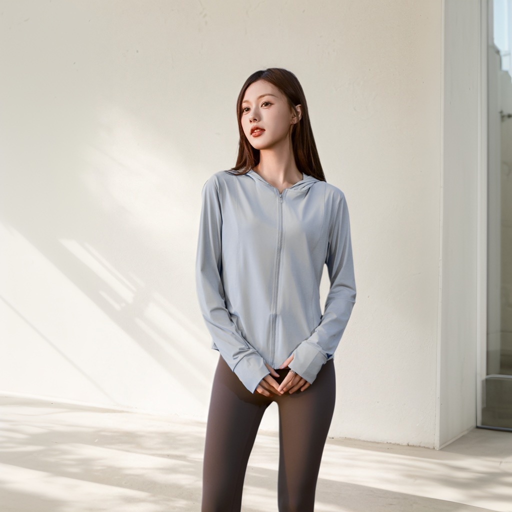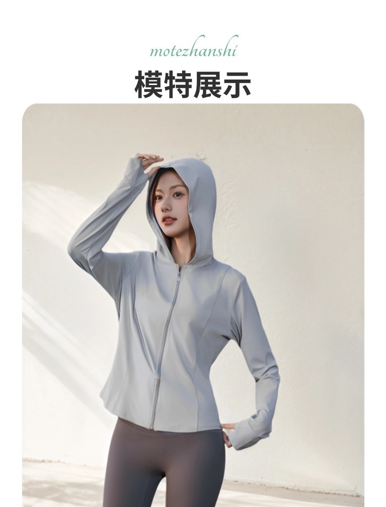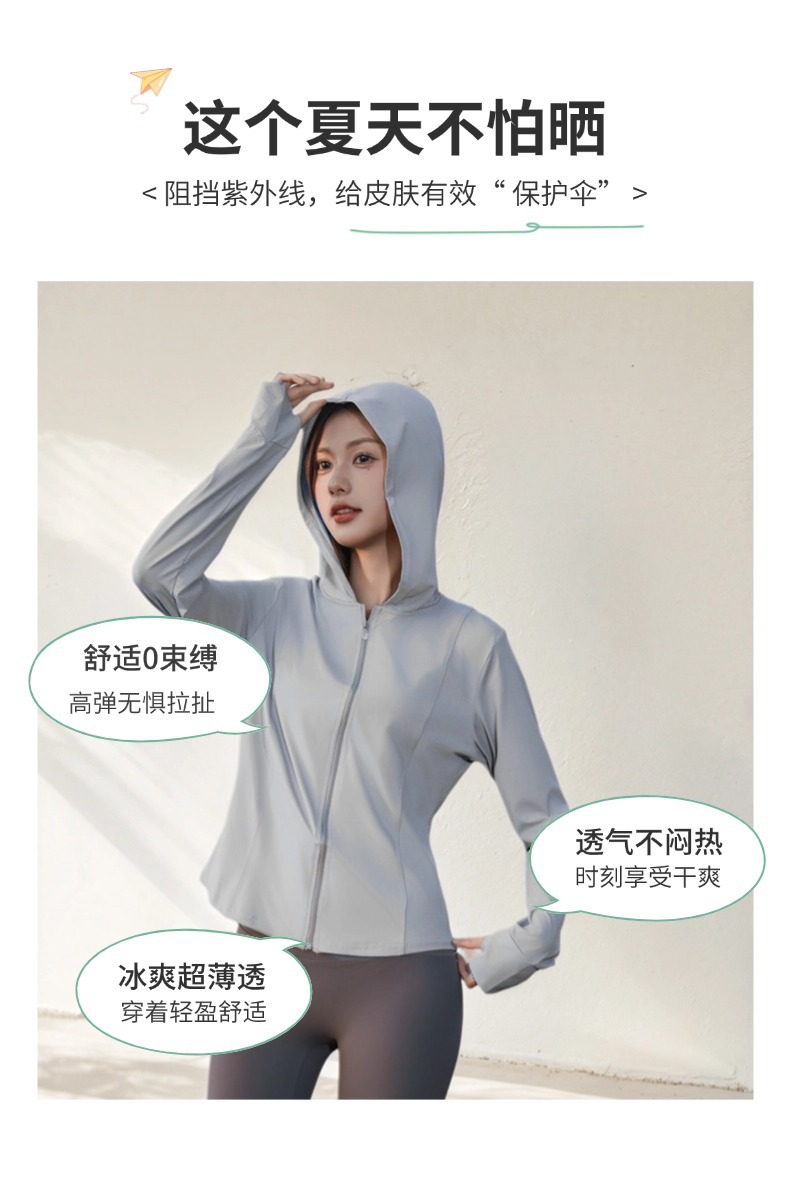 原纱修身款防晒衣女夏季防紫外线外套透气速干连帽冰丝防晒服短款