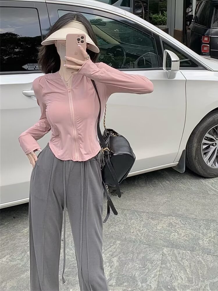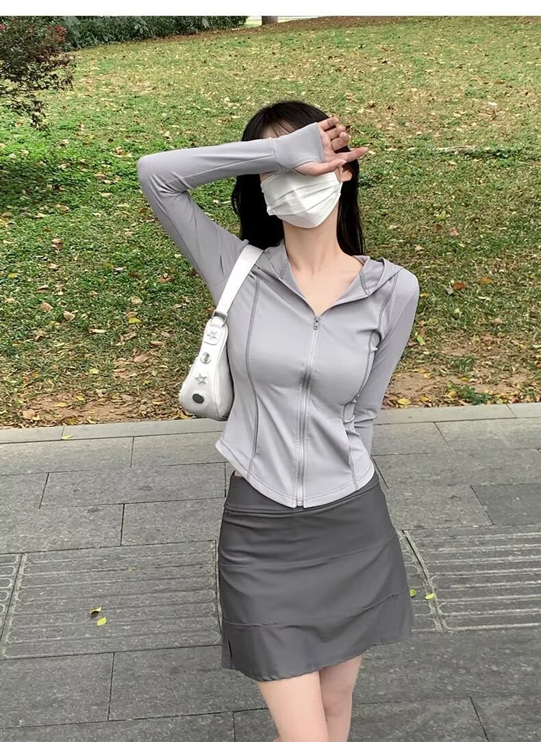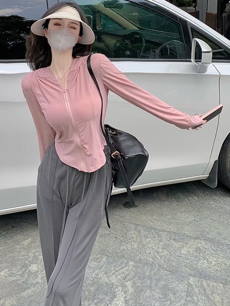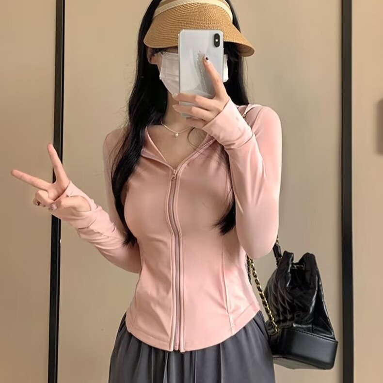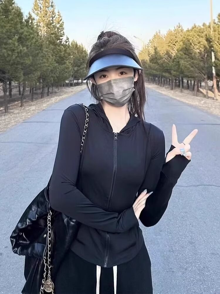 连帽防晒衣女款2025新款夏季连帽外套紧身长袖运动设计感上衣