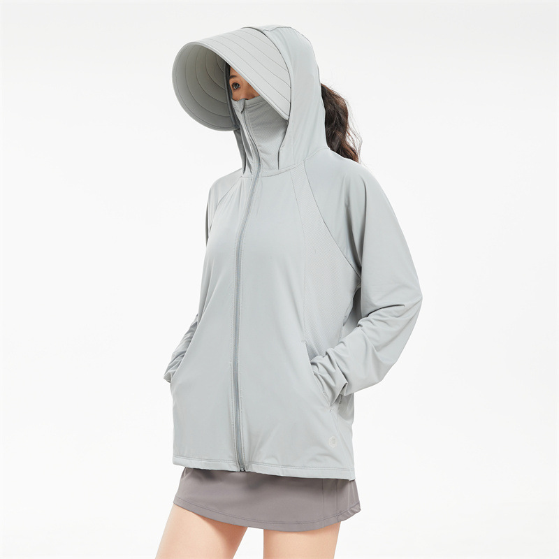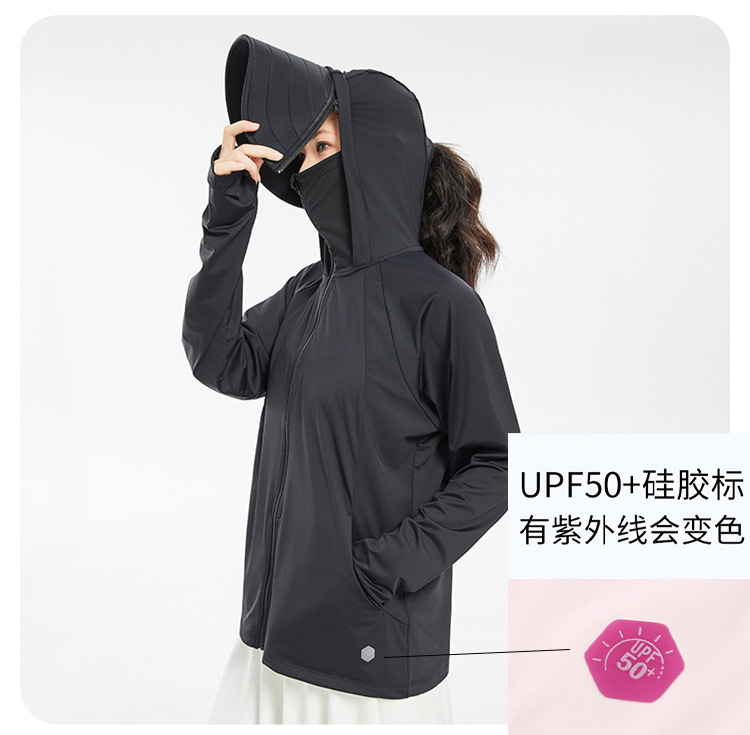 原纱冰丝防晒衣女可拆卸黑胶大帽檐防紫外线UPF100+凉感防晒服女